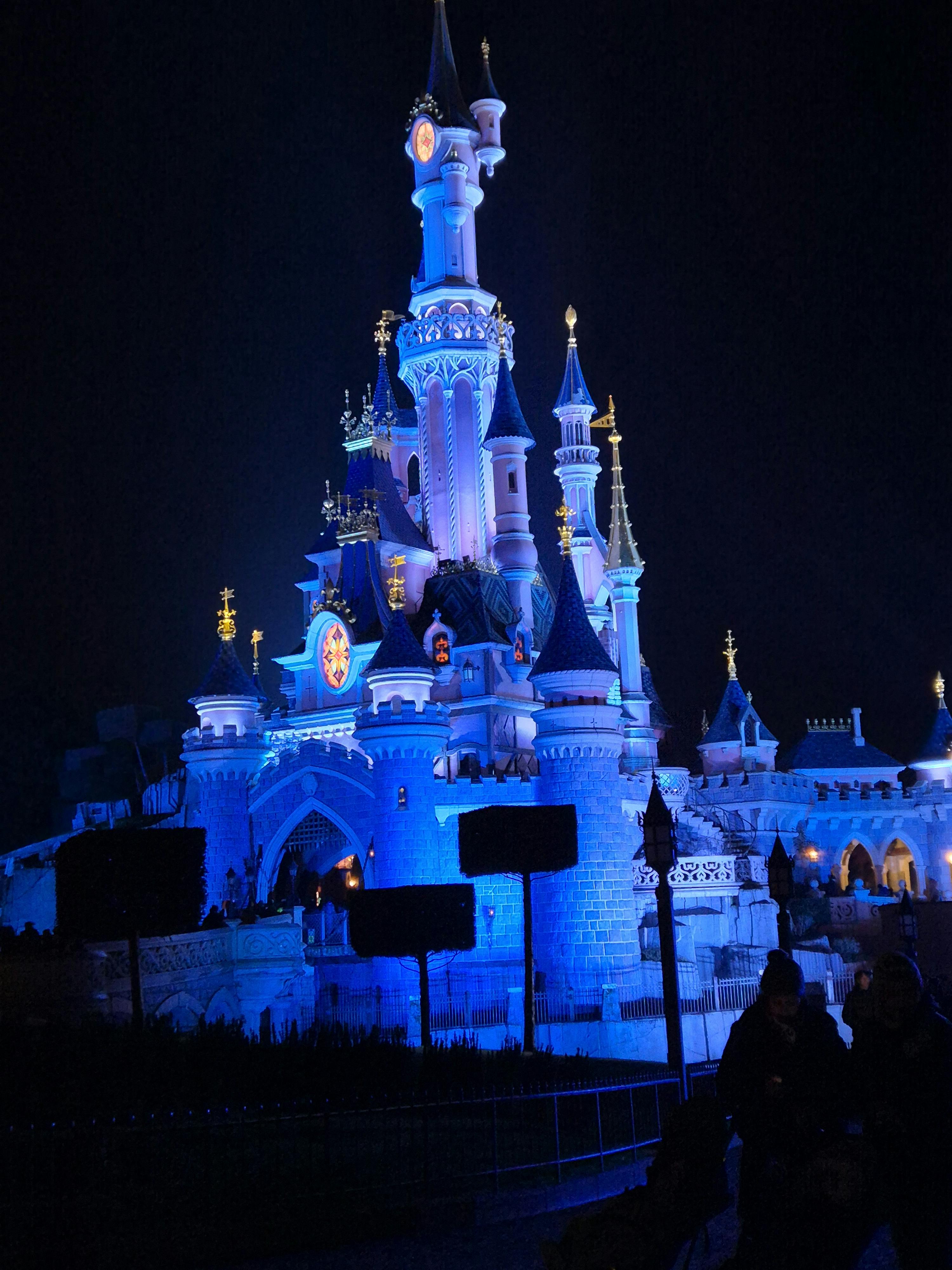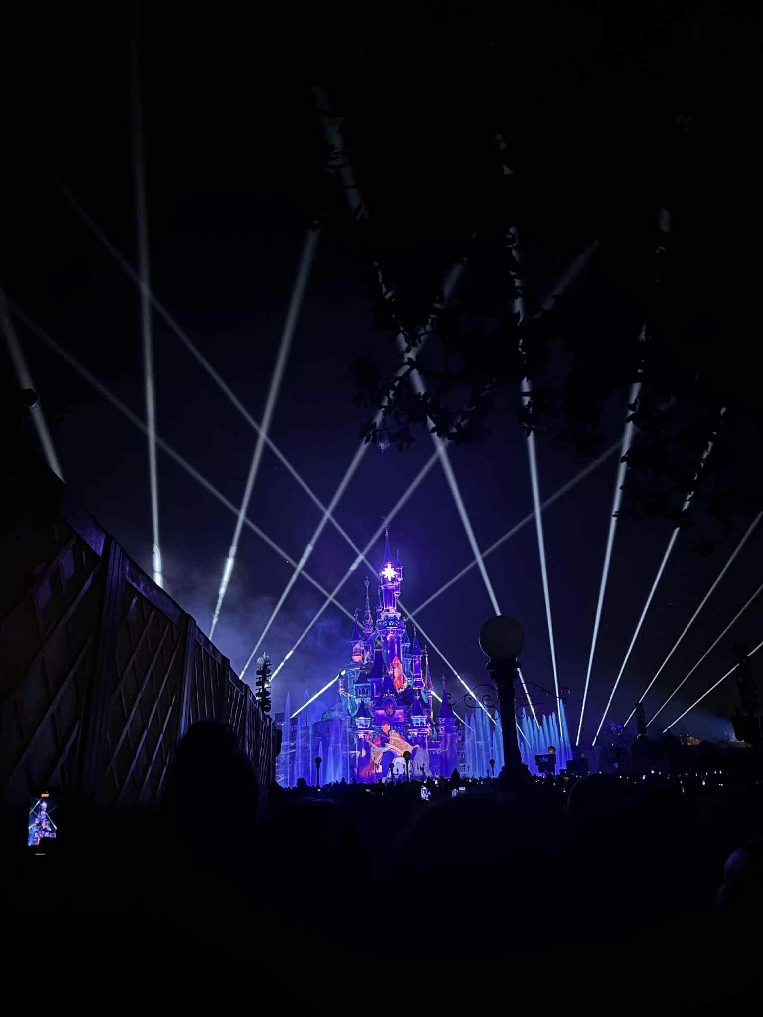 디즈니랜드 파크는 일반적으로 대부분의 저녁에 성에서 프로젝션, 음악 및 특수 효과가 있는 야간 공연을 합니다. 불꽃놀이는 종종 그 일부이지만, 날씨, 현지 규정 또는 특별 행사로 인해 축소되거나 취소될 수 있습니다.