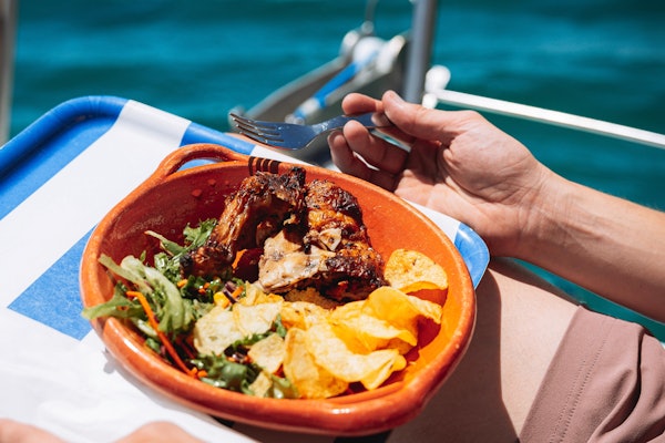 이 호화로운 쌍동선을 타고 4시간 동안 멋진 암석 지층과 해안선을 둘러보며 시원한 푸른 바다에서 상쾌한 물놀이를 즐길 수 있습니다. 지식이 풍부한 현지 승무원을 통해 이 지역의 즐길 거리와 흥미로운 문화적, 역사적 사실에 대한 모든 팁을 얻을 수 있습니다.