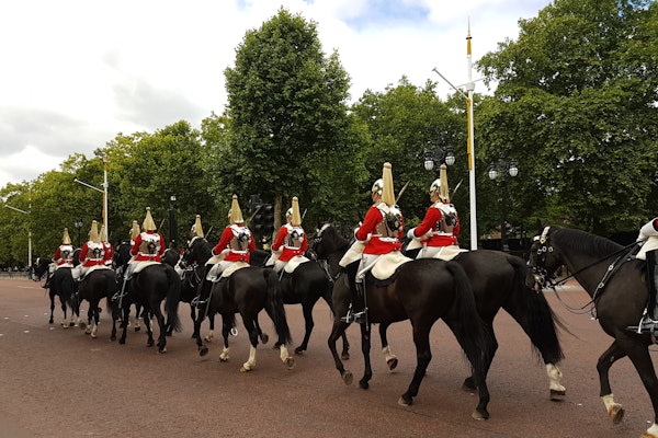 그린 파크를 지나 버킹엄 궁전까지 걸으며 경비병 교대식 (여름에는 매일) 을 관람하세요. 의식이 끝나면 웨스트민스터로 가세요. 다우닝 스트리트, 웨스트민스터 사원, 국회의사당 광장, 경마 퍼레이드, 빅벤, 국회의사당을 둘러보세요. 가장 큰 왕궁인 웨스트민스터 궁전에서 마무리하세요.
