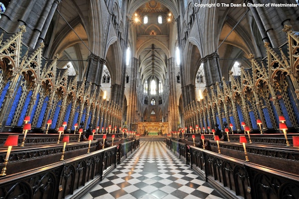 왕실 의식에 사용된 유서 깊은 대관식 의자를 거닐어보세요. 전문 가이드에게 대수도원의 풍부한 역사에 대해 배워보세요.