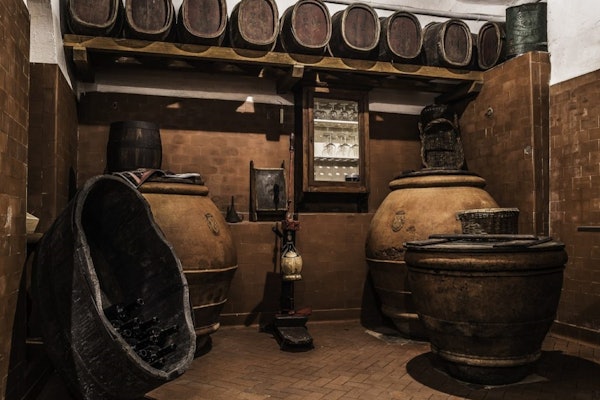 나무 통에서 와인을 숙성하는 빌라 아래의 저장고를 둘러보고 수세기 동안 재배한 다양한 포도 품종에 대해 들어보세요. 전통 와인 제조 과정에 대해 알아보고 빈산토에 사용되는 오르시아와 카라텔리를 살펴보세요. 마지막으로, 계절과 예약 가능 여부에 따라 달라지는 3가지 토스카나 와인을 선보이는 와인 테이스팅 세션을 즐겨보세요.