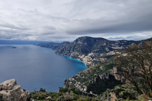 울창한 경치, 레몬 숲, 테라스, 폭포를 따라 걷는 동화 속 산책