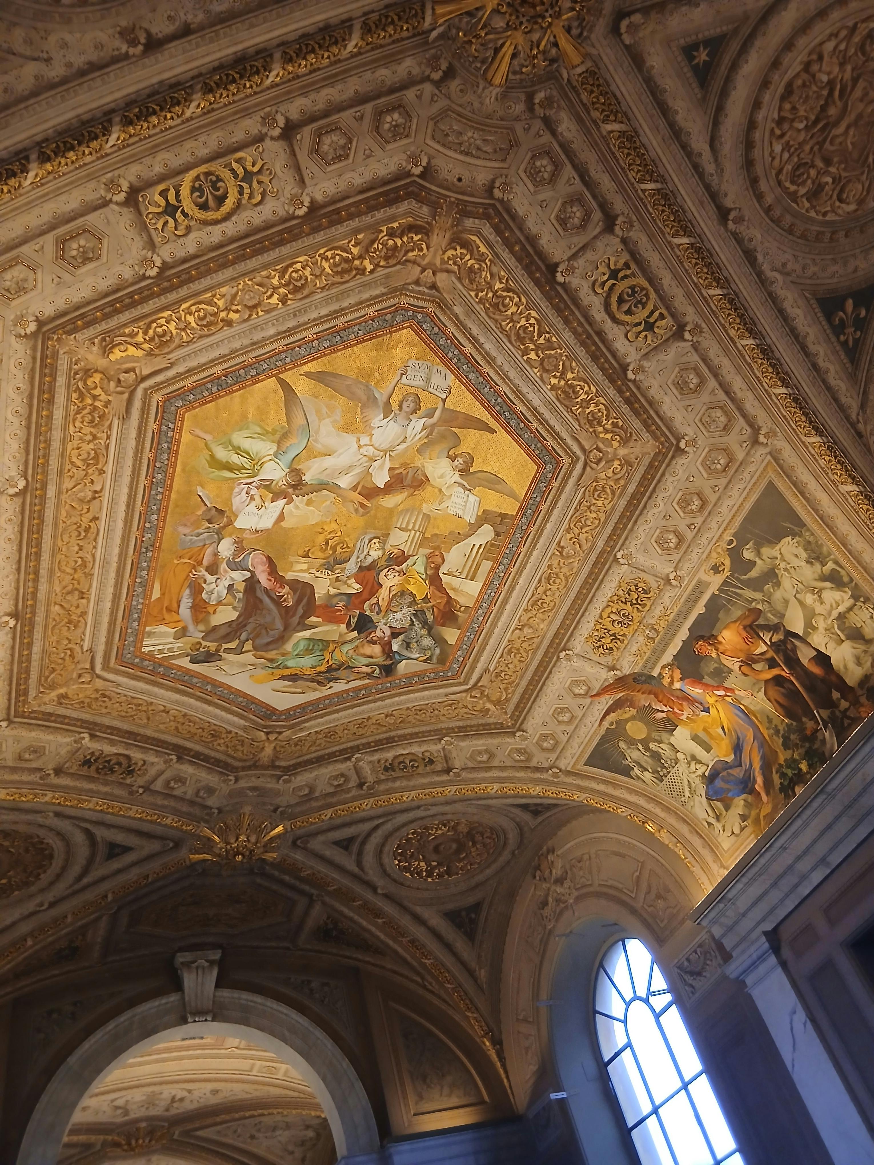 반짝이는 금색 천장으로 장식된 지도 갤러리는 16세기에 제작된 이탈리아의 40개 세부 지형도를 전시합니다. 각 지도에는 각 이탈리아 지역에서 중요한 기호와 관심 장소가 포함되어 있습니다.