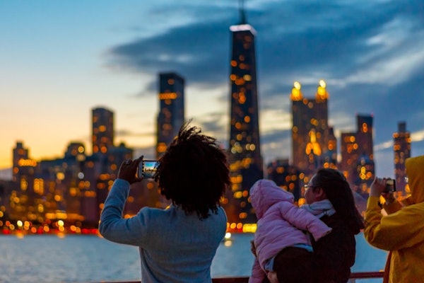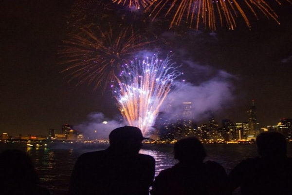 Bekijk het Navy Pier vuurwerk vanaf de rivier de Chicago. De tocht duurt 45 minuten en blijft op de rivier, zonder naar Lake Michigan te gaan. Deze optie is een kortere versie van Wendella's rondvaart over Lake Michigan.