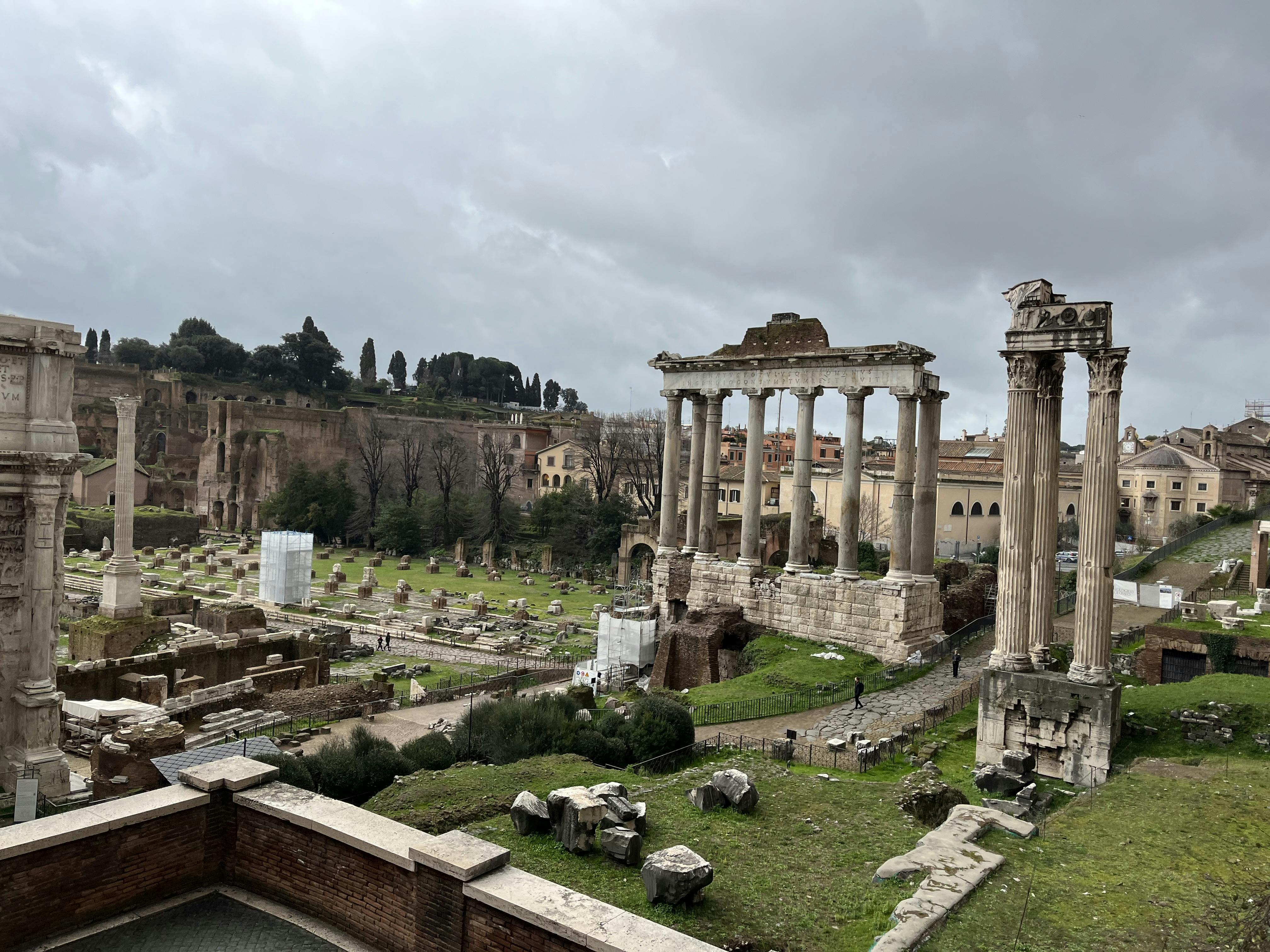 Je loopt door een uitgestrekt veld van ruïnes die ooit het dagelijks leven van Rome beheersten. Dit was het centrum voor politiek, recht, handel en religie. Stel je drukke stenen straten voor, openbare toespraken, rechtszaken en ceremonies tussen tempels en regeringsgebouwen.