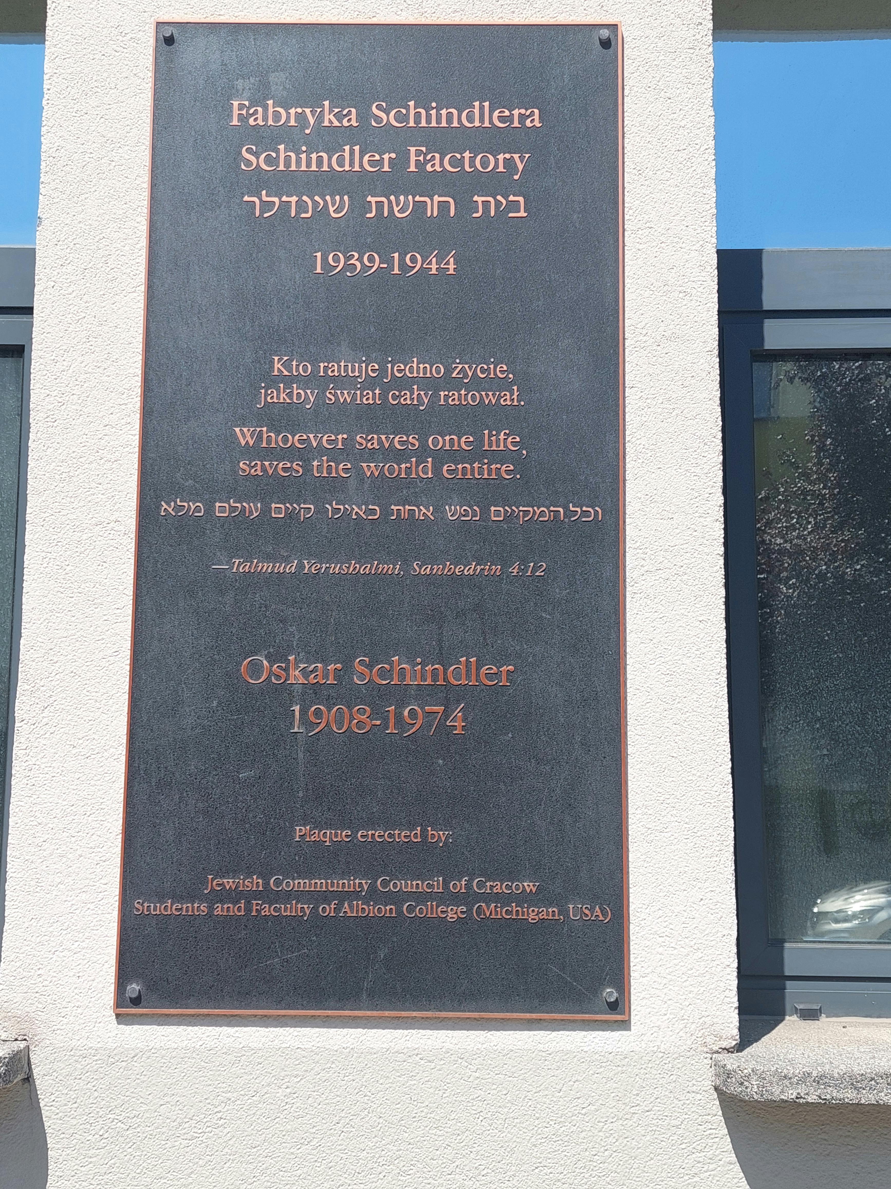 Schindler's Factory Museum is genoemd naar Oskar Schindler, een Duitse industrieel die tijdens de Tweede Wereldoorlog het leven van minstens 1000 Joodse arbeiders redde.