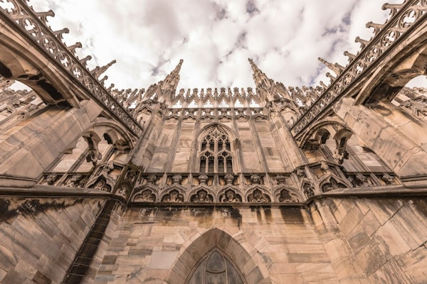 Als je in de schaduw van de Duomo staat, zie je waarom dit bouwwerk het handelsmerk van de Milanese skyline is.