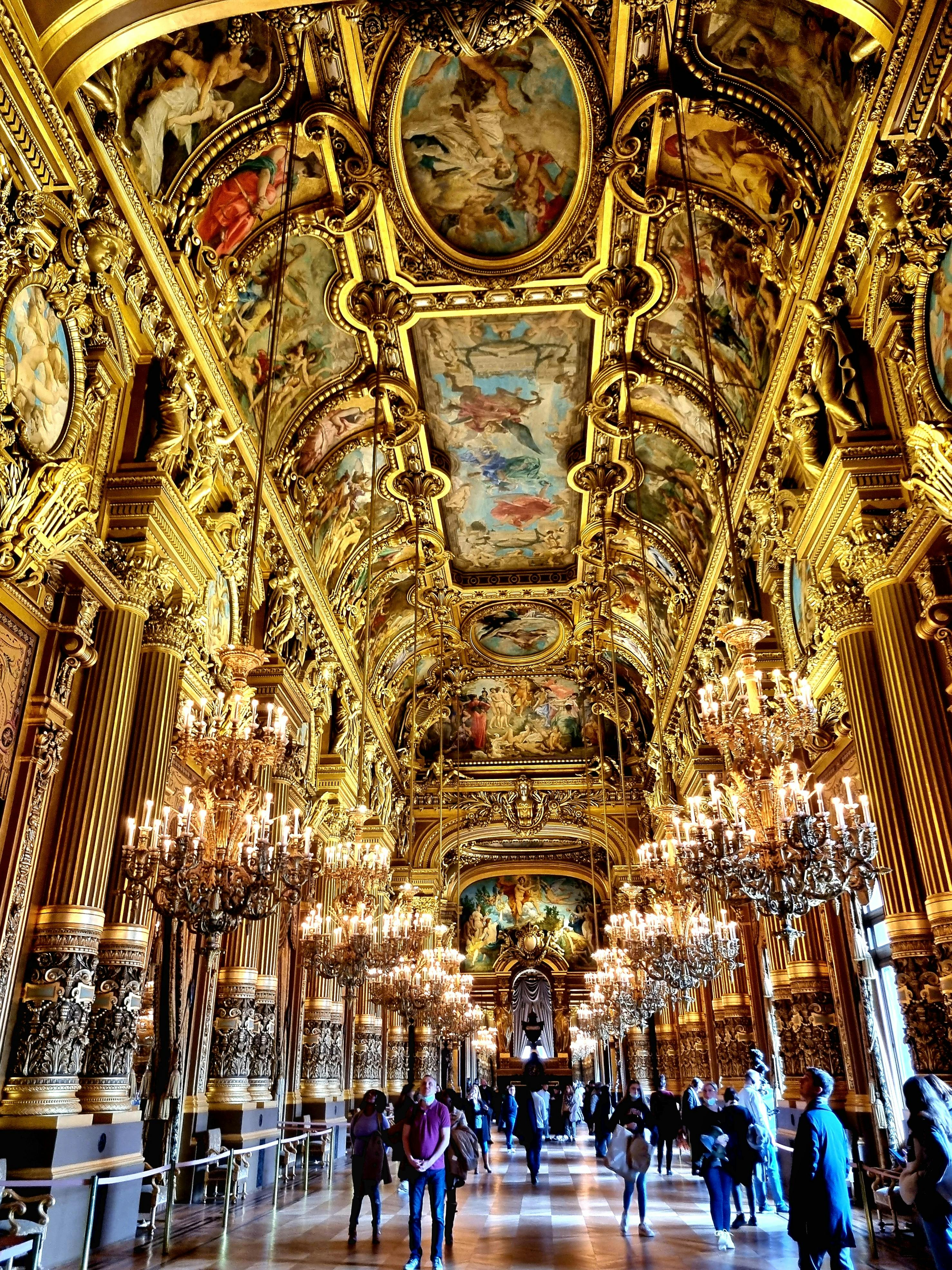 Een van de kroonjuwelen van de Parijse architectuur, het Palais Garnier, met zijn gouden foyers met glinsterende kroonluchters en beschilderde fresco's op het plafond, mag je zeker niet missen.