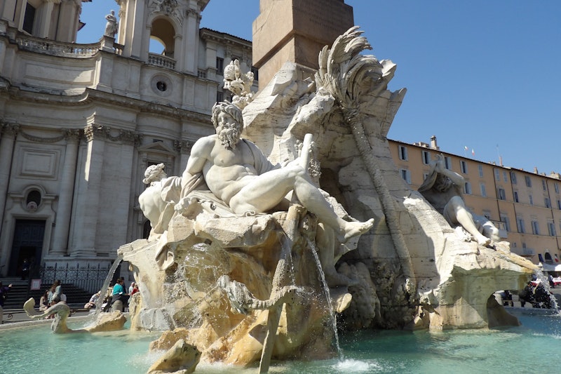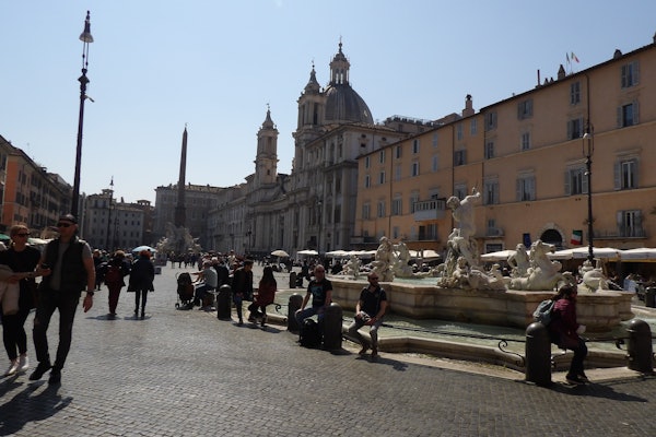 Ga langs het Piazza della Rotonda om het Pantheon te zien en kom dan aan op het majestueuze Piazza Navona, in het midden waarvan de beroemde Fontein van de Vier Rivieren staat.