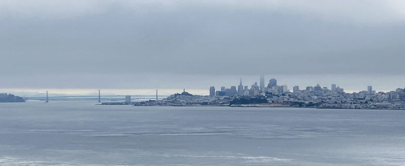 De tour eindigt langs de waterkant van San Francisco, met uitzicht op Alcatraz Island en de San Francisco Bay.