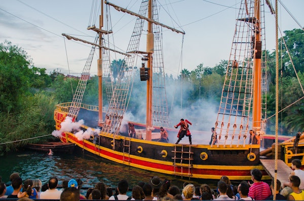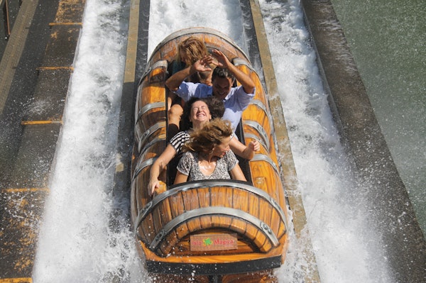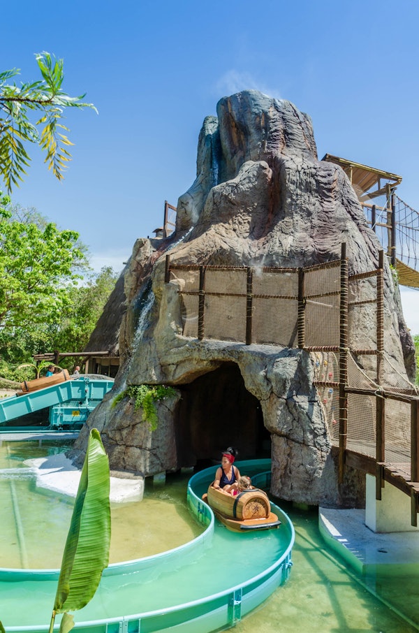 Je vindt er allerlei soorten attracties, zoals de Anaconda, Isla Mágica's waanzinnige waterval-attractie, in een dichtbebost woud. Kijk uit voor de druppels die zomaar uit de lucht komen vallen en zet je schrap voor een nat avontuur! Laat je handdoek nog maar even liggen en ga gelijk door naar de Iguaza-watervallen. Zoef met 50 km per uur naar beneden over deze beroemde Zuid-Amerikaanse waterval, en zie hoe de grote golven iedereen opslokken. Niemand is hier veilig!