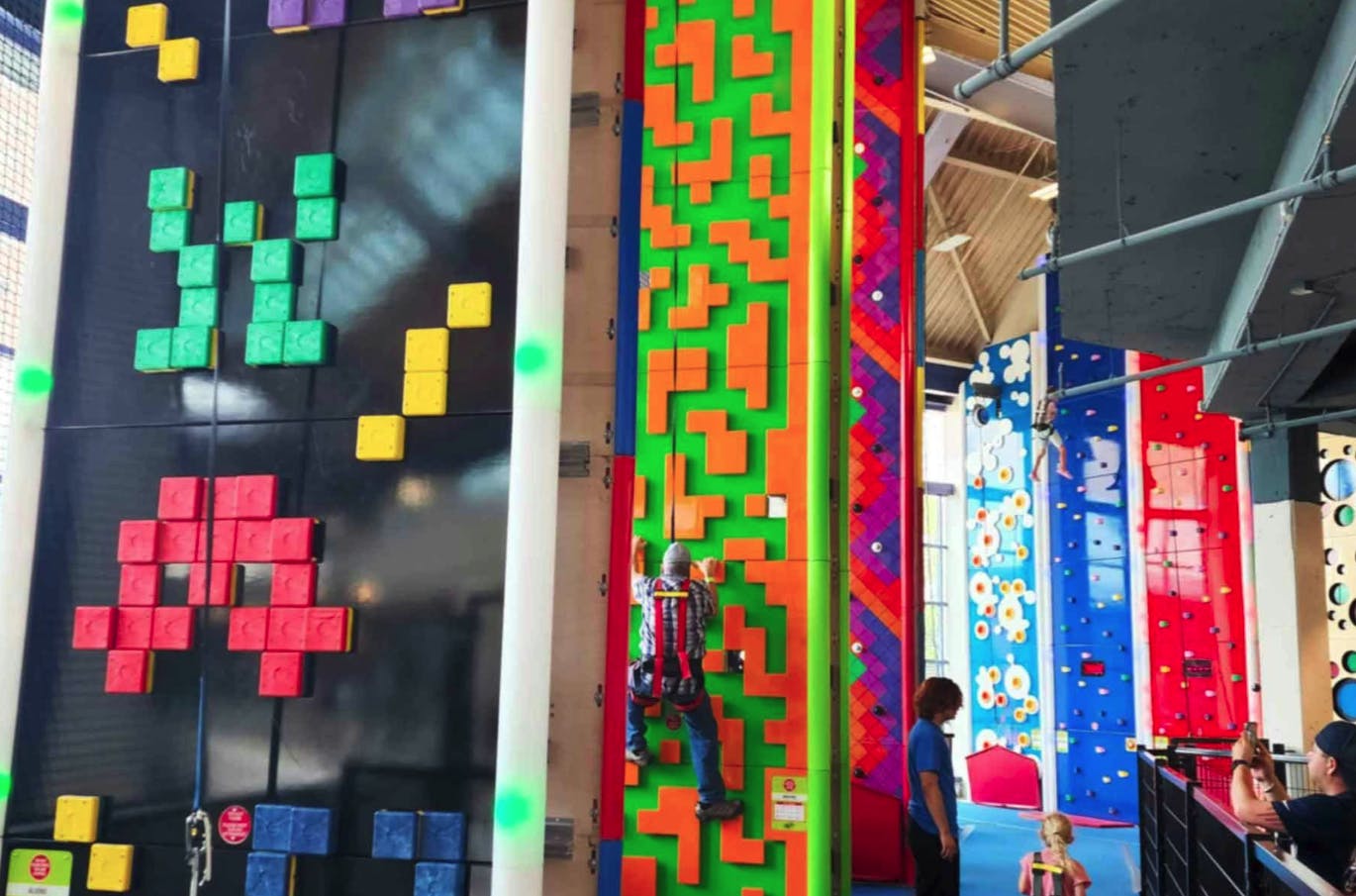 LiggettVille Adventure Center w sklepach Rivercenter oferuje aktywną fizycznie, przyjazną rodzinie przygodę z wysokimi linami, szynami na suwak i ścianami wspinaczkowymi dla ciągłej zabawy w pomieszczeniach