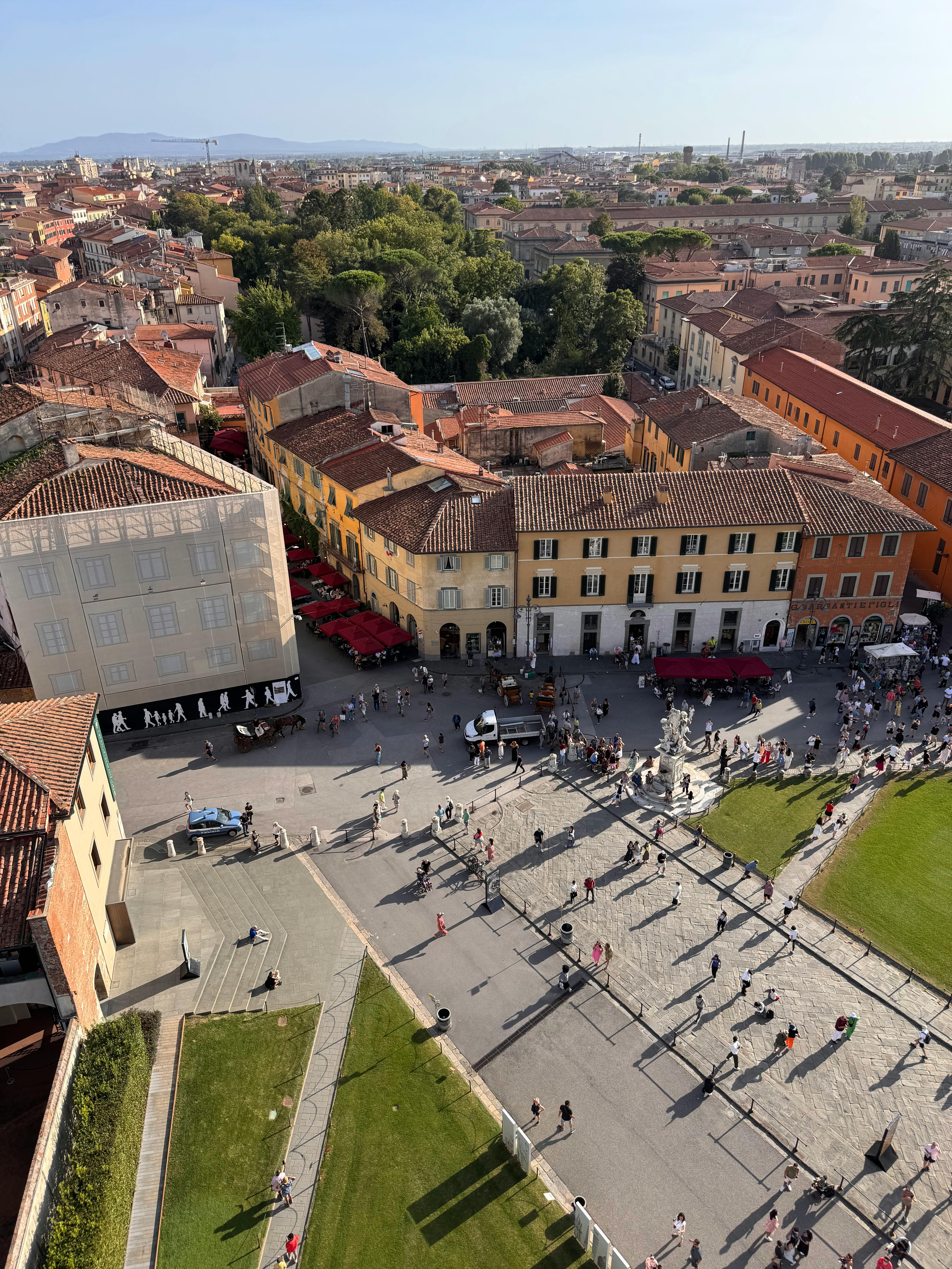 Tylko psy przewodniki mogą wejść na Piazza del Duomo (plac, na którym znajduje się krzywa wieża), więc zwierzęta należy zostawić w domu.