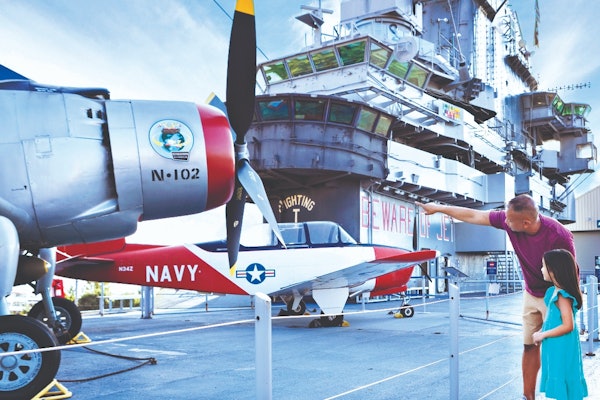 Zobacz dziesiątki samolotów wojskowych, w tym naddźwiękowy samolot szpiegowski, wszystkie pokazane w zabytkowym, zabytkowym lotniskowcu Intrepid i wokół niego.