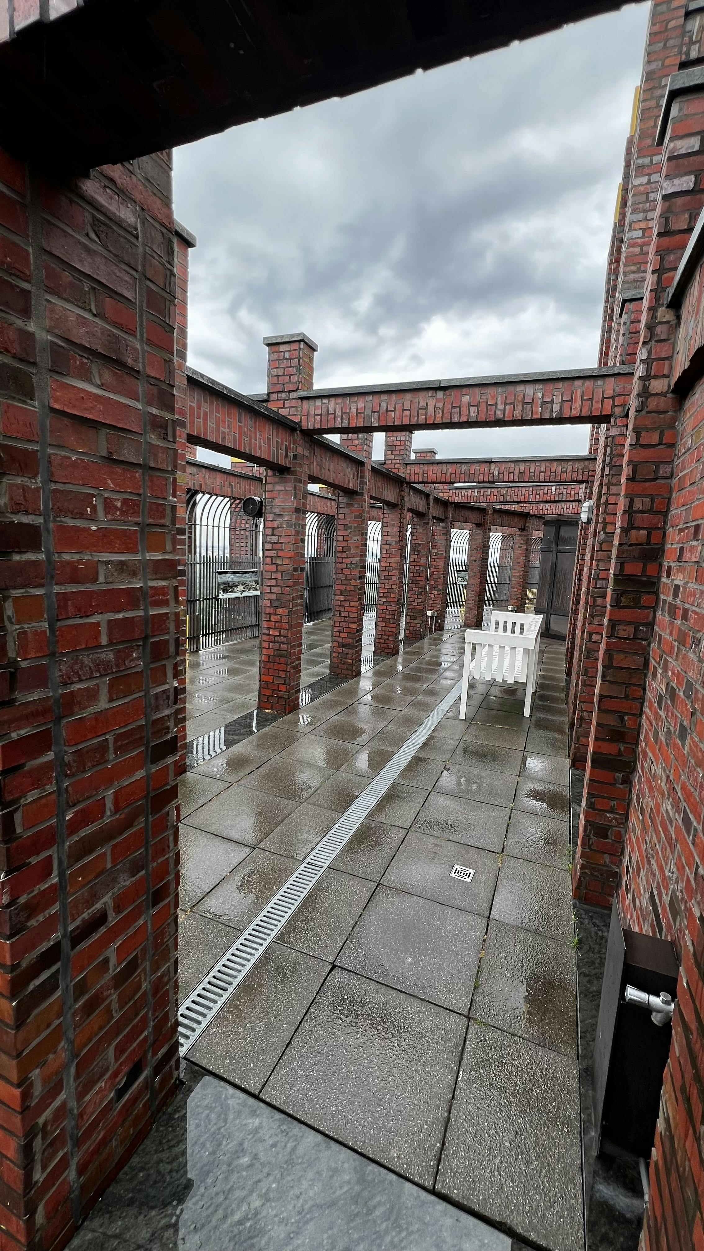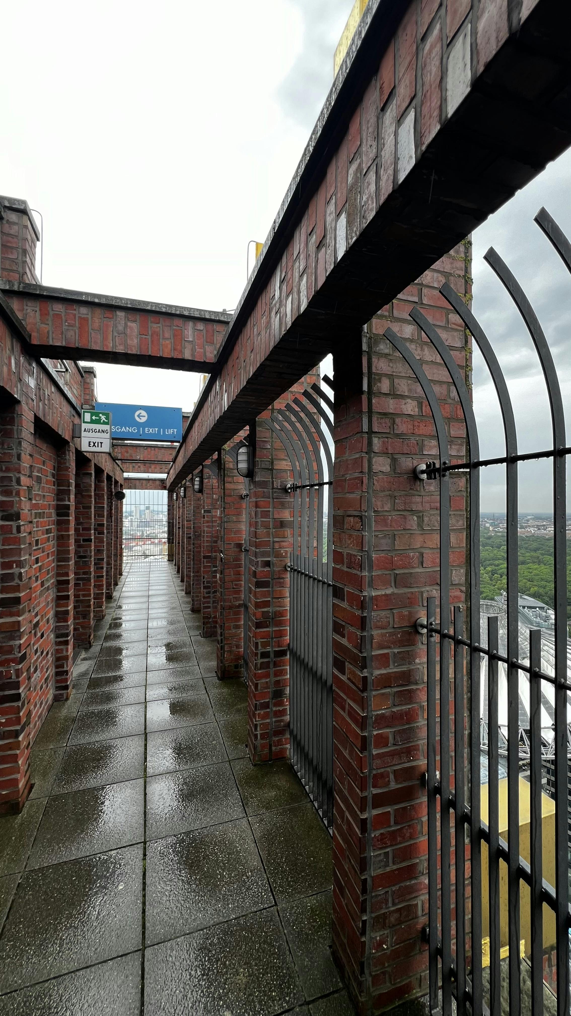 Wjazd szybką windą. Miejsce podobne do punktu widokowego na Pałacu Kultury łącznie z okratowaniem. Widok również. Wystawa zdjęć historia obiektu w j.niemieckim. Można to obejrzeć nawet w 10 minut szczególnie przy braku pogody jaki był naszym udziałem. Obok budynku stoi fragment Muru Berlińskiego z pamiątkowa tabliczką.