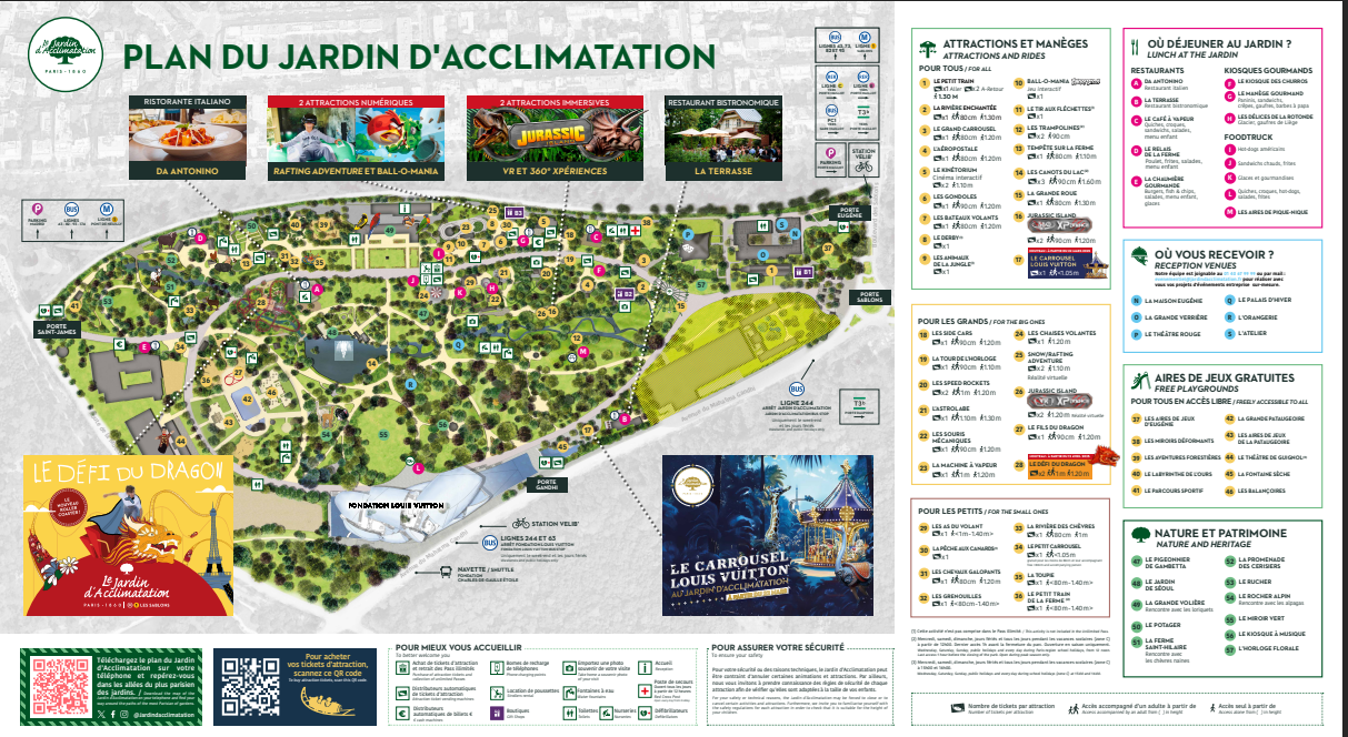 Odwiedź Jardin d'Acclimatation, 18-hektarowy park w Paryżu z 42 przejażdżkami, ptaszarnią, małą farmą i spokojnymi ścieżkami.