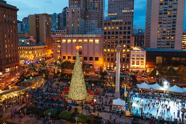 Dołącz do wycieczki z przewodnikiem, aby zobaczyć świąteczne lampy w San Francisco, gdzie zobaczysz świąteczne pokazy i sezonowe dekoracje miasta.