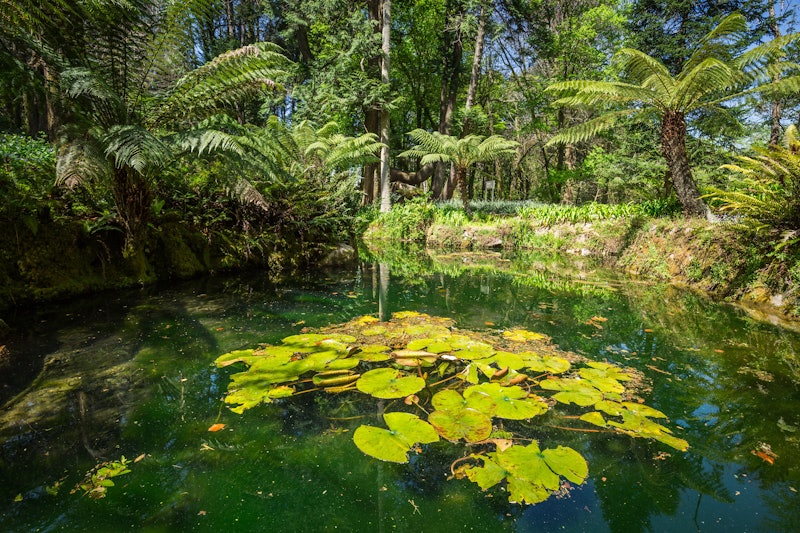 Passeie por decorações detalhadas inspiradas na arquitetura gótica e indiana e por um jardim que é um Patrimônio Mundial da UNESCO, que inclui fontes, nascentes, grutas e um lago!
