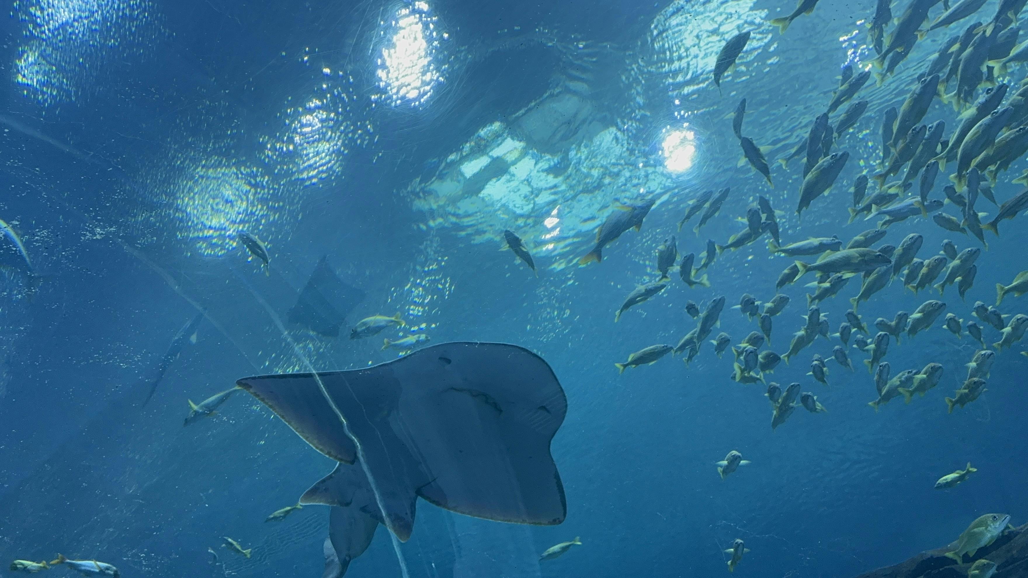 Caminhe por um túnel gigante de acrílico cercado por tubarões, arraias-manta e muito mais
