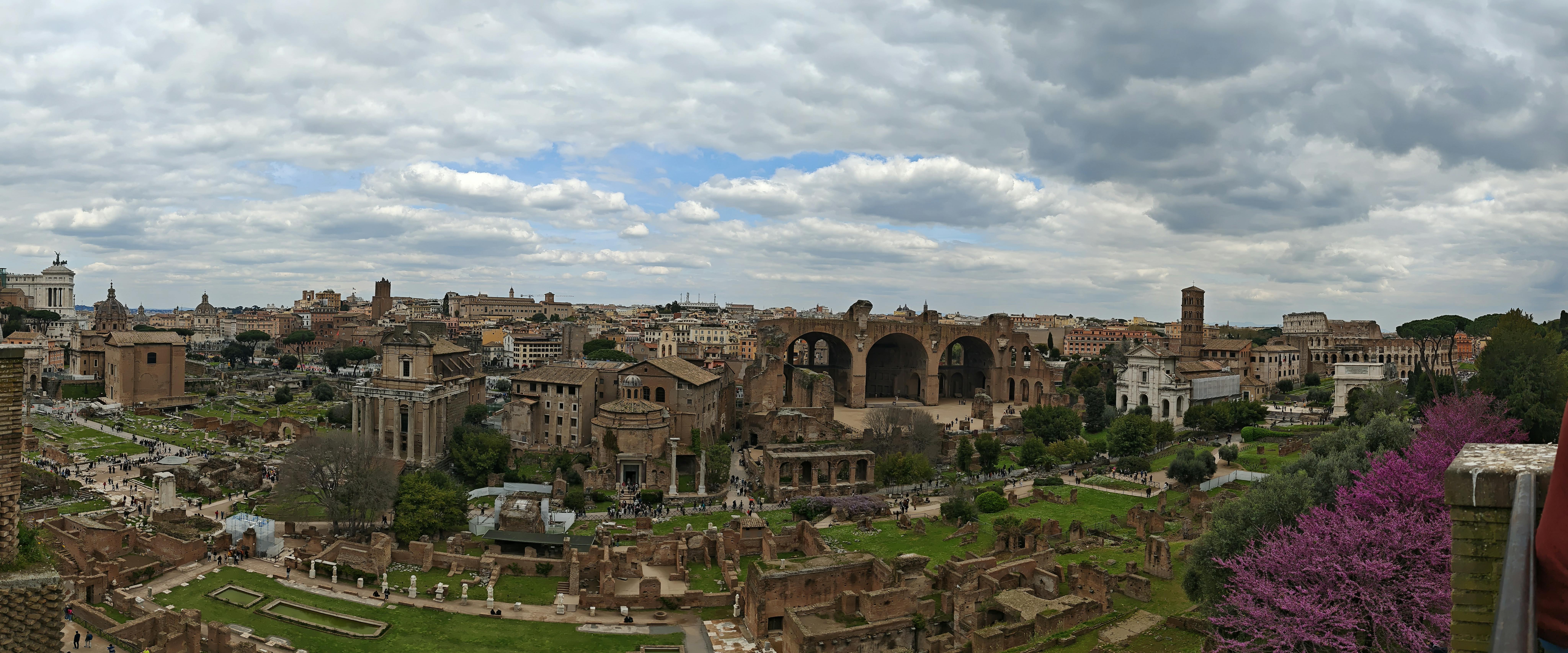 Caminha-se por um vasto campo de ruínas que outrora geriam a vida quotidiana de Roma. Este era o centro da política, do direito, do comércio e da religião. Imagine ruas de pedra apinhadas, discursos públicos, processos judiciais e cerimónias que se deslocam entre templos e edifícios governamentais.