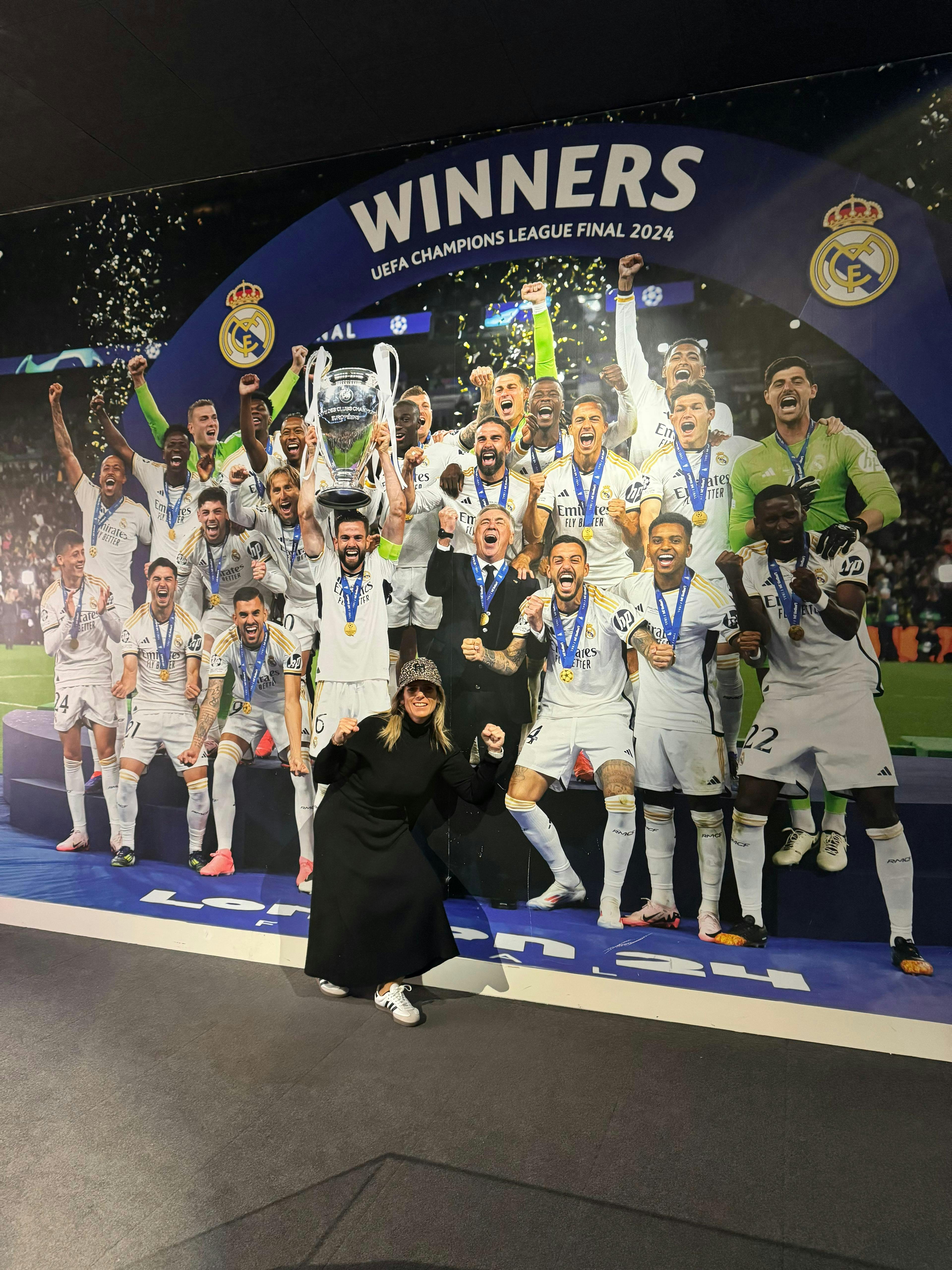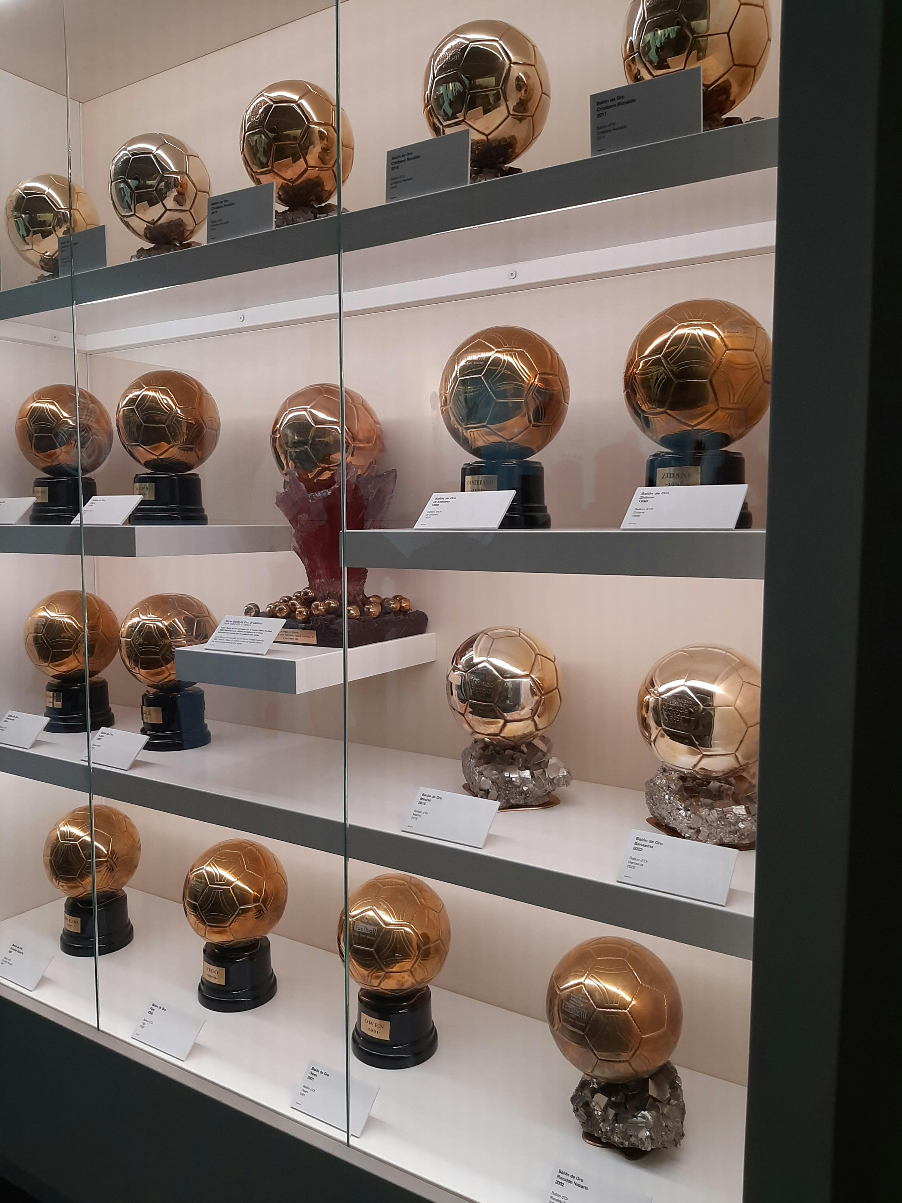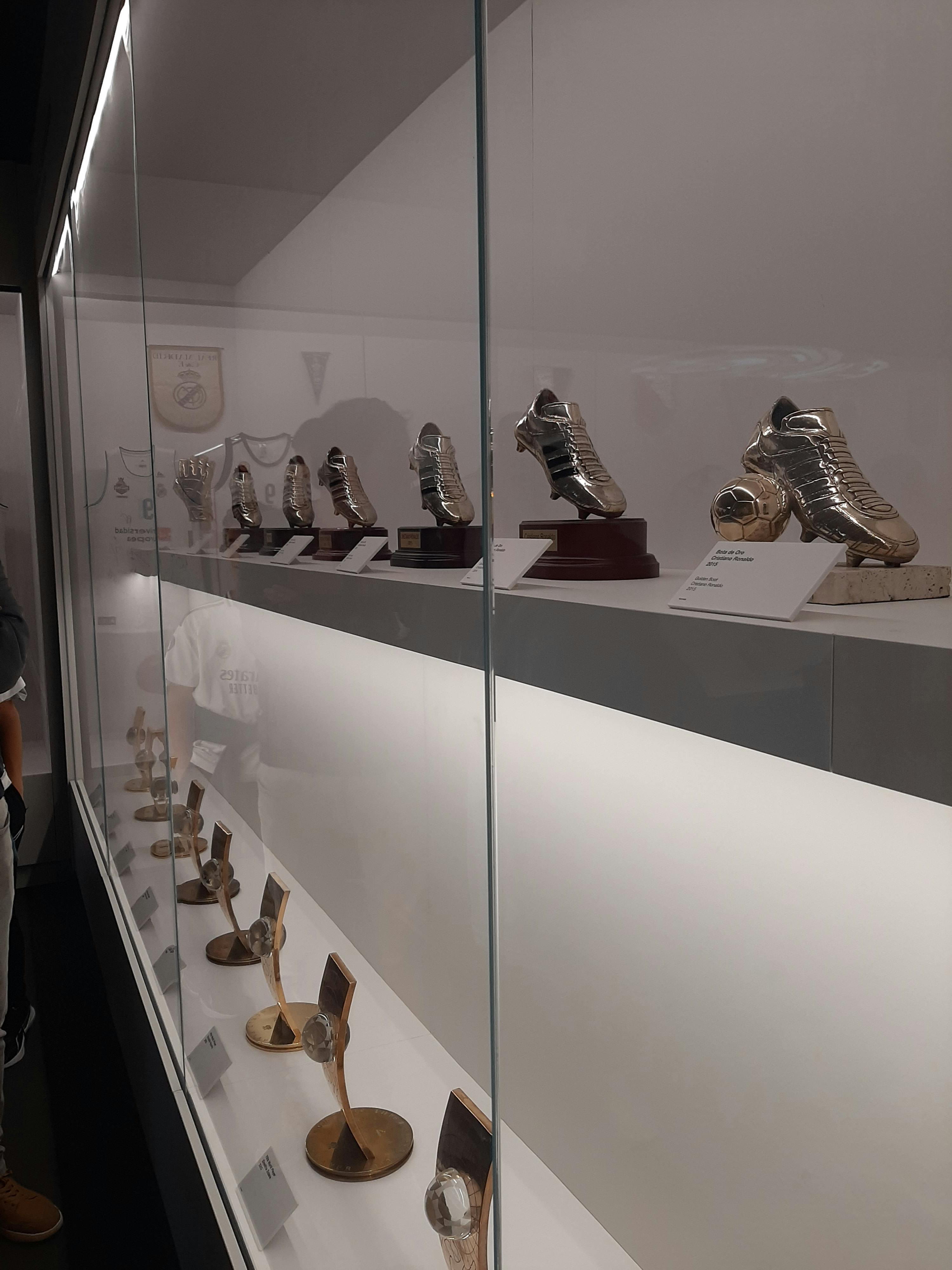 Depois, chega-se à Sala de Troféus. O espaço brilha com vidro, aço e superfícies polidas. À sua frente, os 14 troféus da Liga dos Campeões da UEFA encontram-se numa longa e brilhante fila. As taças de prata reflectem as luzes acima, cada uma marcada com uma época, um adversário, uma final. À sua volta, vêem-se títulos da La Liga, taças da Copa del Rey, troféus do Mundial de Clubes e prémios individuais. A sala parece estar repleta de história, como se cada parede e cada expositor trouxessem outra história de uma final, um regresso ou um jogador lendário.
