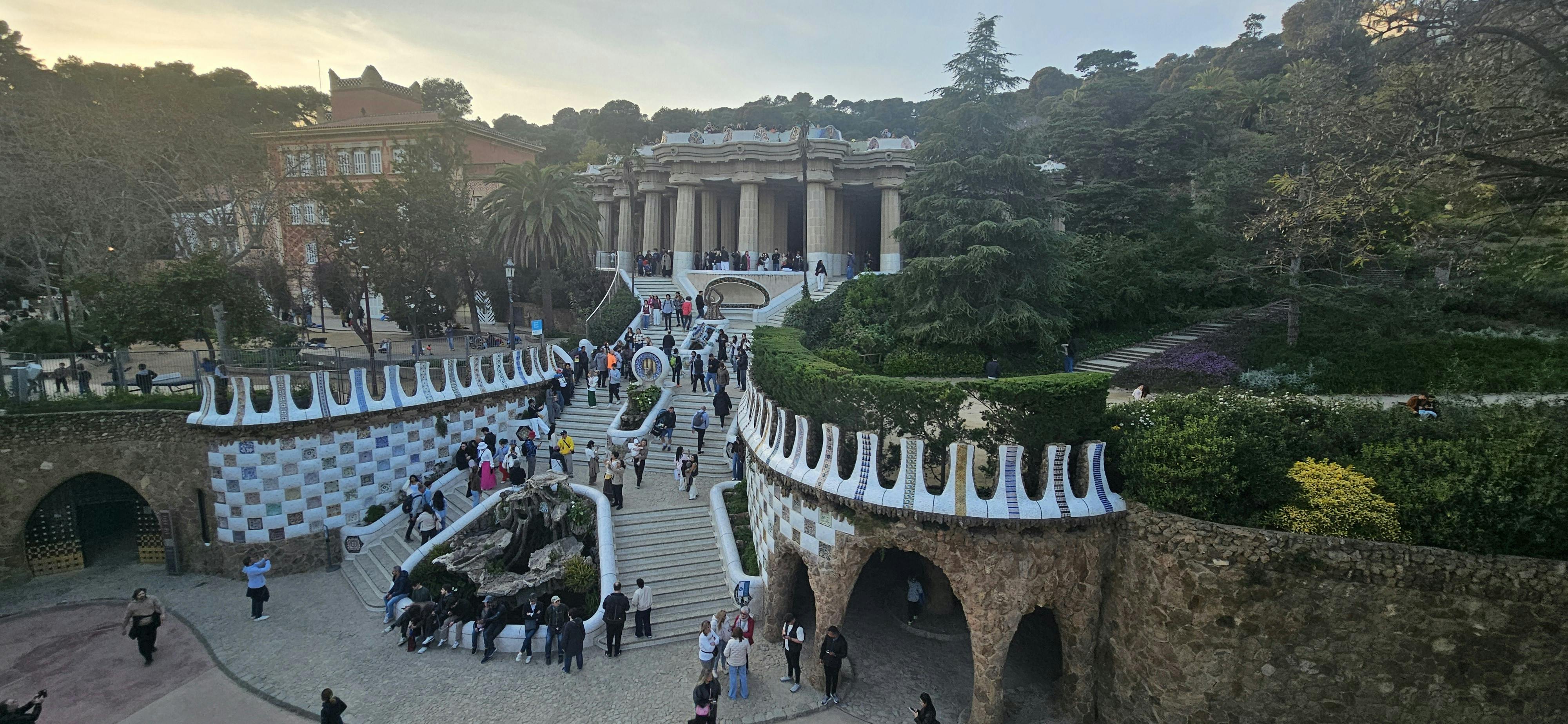Porque é que é imperdível: Dá-lhe a fotografia clássica do Parque Güell, introduz o estilo de mosaico de Gaudí e indica-lhe que está a entrar num parque urbano muito invulgar.