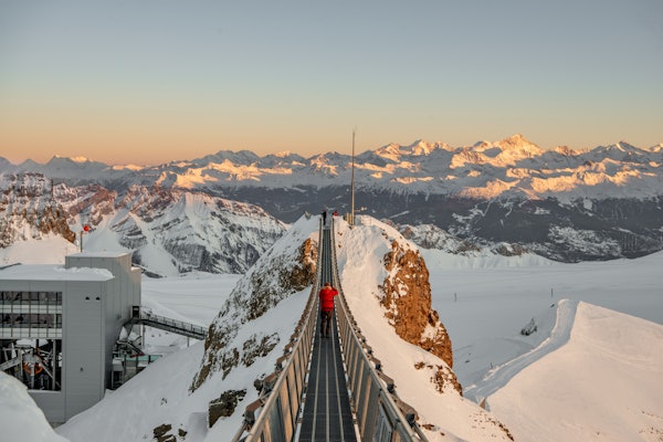 Vistas sublimes, trenó e uma ponte suspensa entre picos de montanha!
