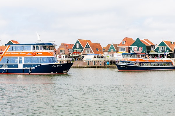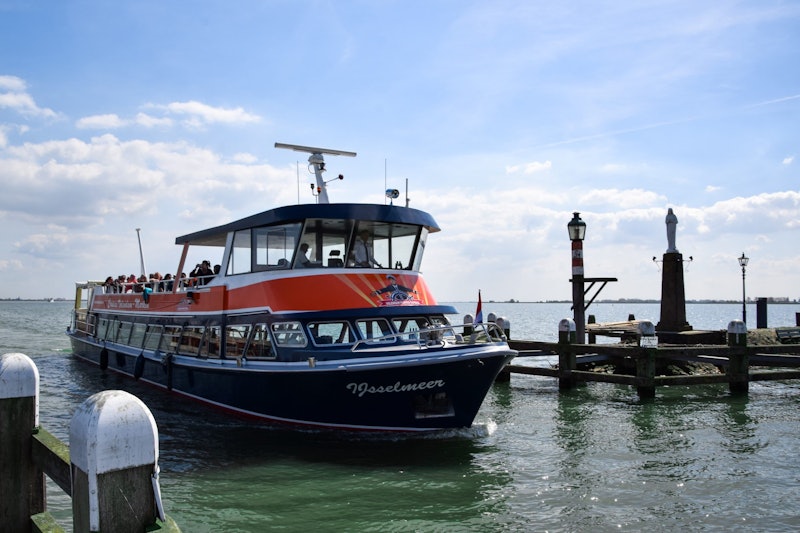 Da Estação Central de Amsterdã (lado de trás), pegue o ônibus EBS para Volendam ou Marken. Os barcos de Volendam partem em: 9:45 (quando ocupado), 10:30, 11:15, 12:00, 12:45, 13:30, 14:15, 15:00, 15:45, 16:30, 17:15, 18:00 (quando ocupado), 18:30 Os barcos de Marken partem em: 10:30 (quando ocupado), 11:15, 12:00, 12:45, 13:30, 14:15, 15:00, 15:45, 16:30, 17:15, 18:00, 18:30 (quando ocupado), 19:00