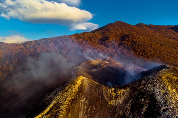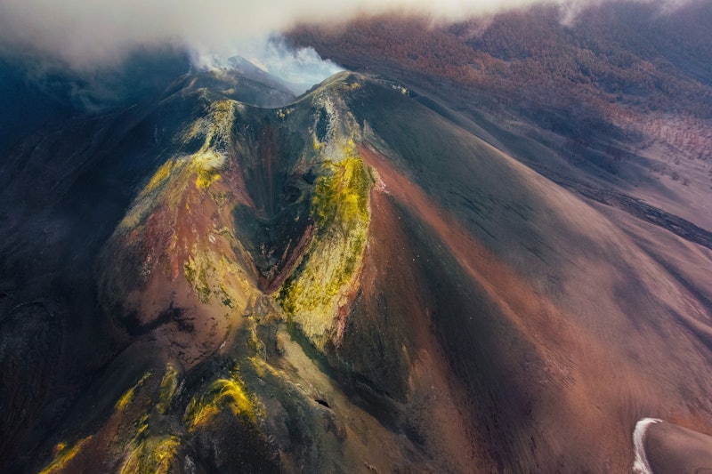 Dirija-se ao Túnel de la Cumbre (túnel do tempo), depois continue para sudoeste até à zona afetada pelo vulcão Tajogaite no Parque Natural Cumbre Vieja.