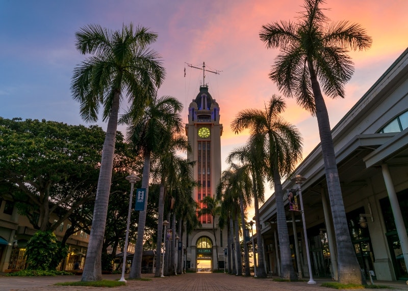 Башня Алоха, расположенная в оживленной гавани Гонолулу в центре Гонолулу, является знаковым символом Гавайев и одной из самых узнаваемых достопримечательностей штата.