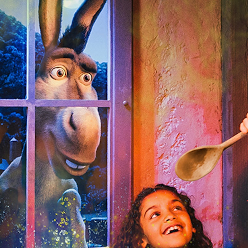 Ваше путешествие начинается, когда вы садитесь в волшебный 4D-автобус DreamWorks Tours в Королевство Далекого царства. Всегда дерзкий осел станет вашим проводником!