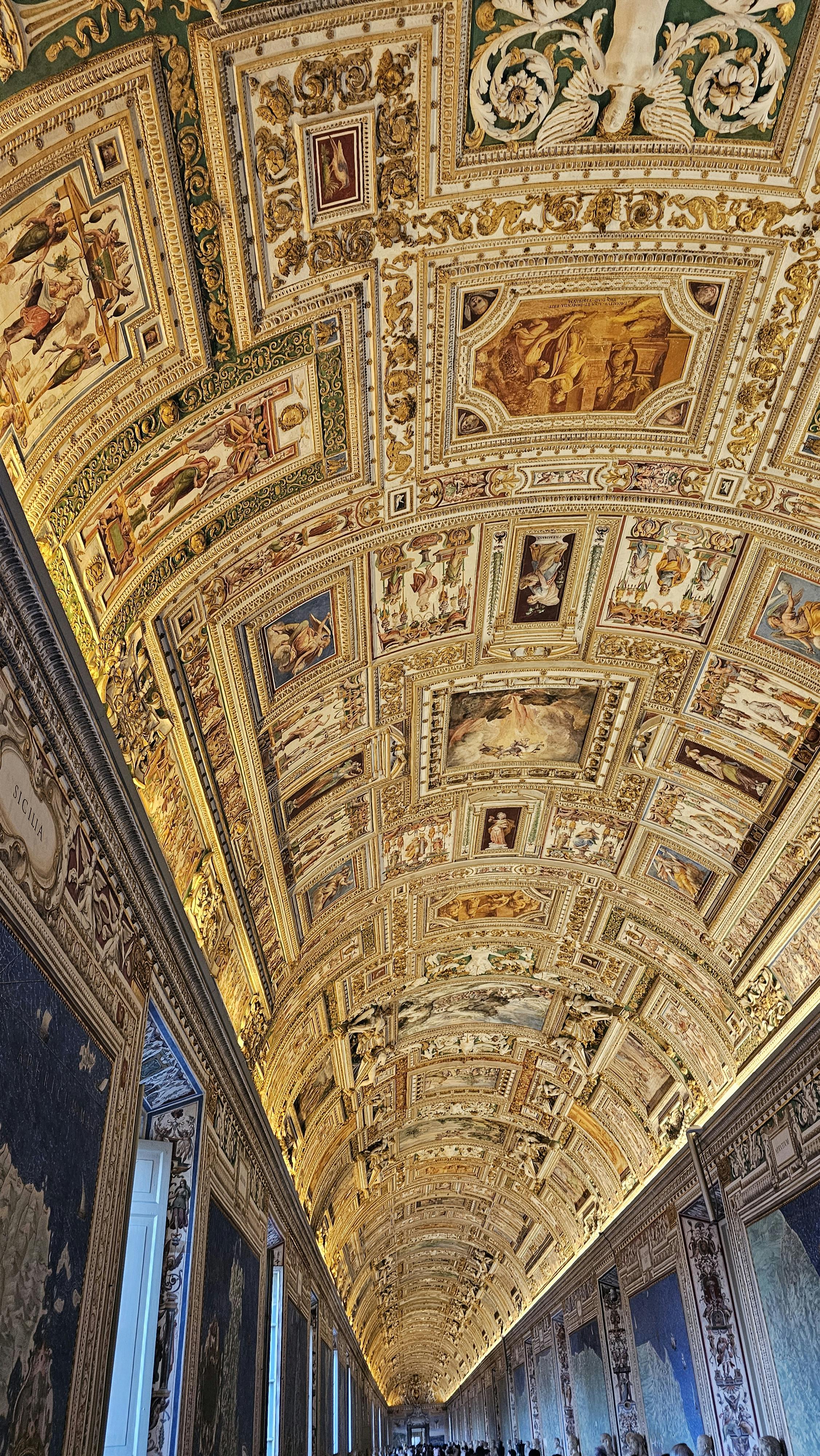 В Галерее карт, украшенной мерцающим золотым потолком, представлены 40 подробных топографических карт Италии, заказанных в 16 веке. Каждая карта содержит значимые символы и достопримечательности в каждом итальянском регионе.