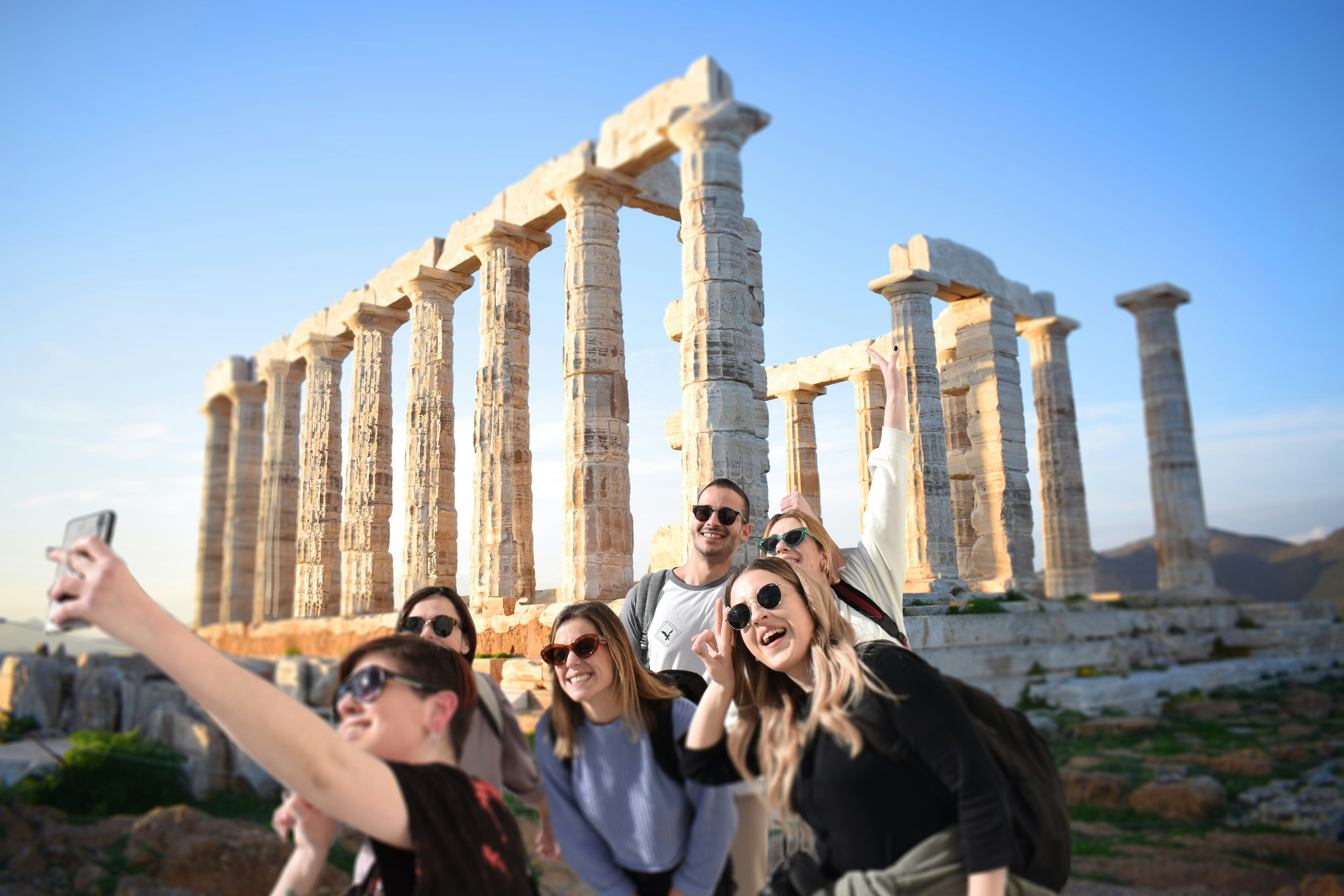 Cape Sounion och Temple of Poseidon: Morgon- eller solnedgångstur för små grupper + transfer