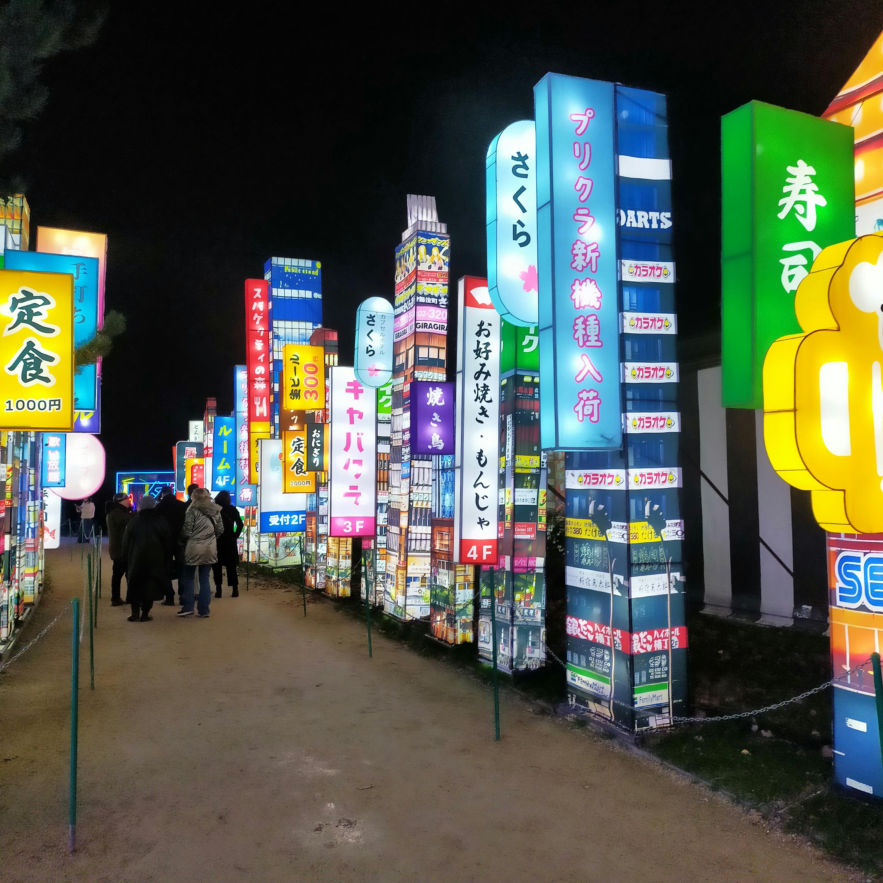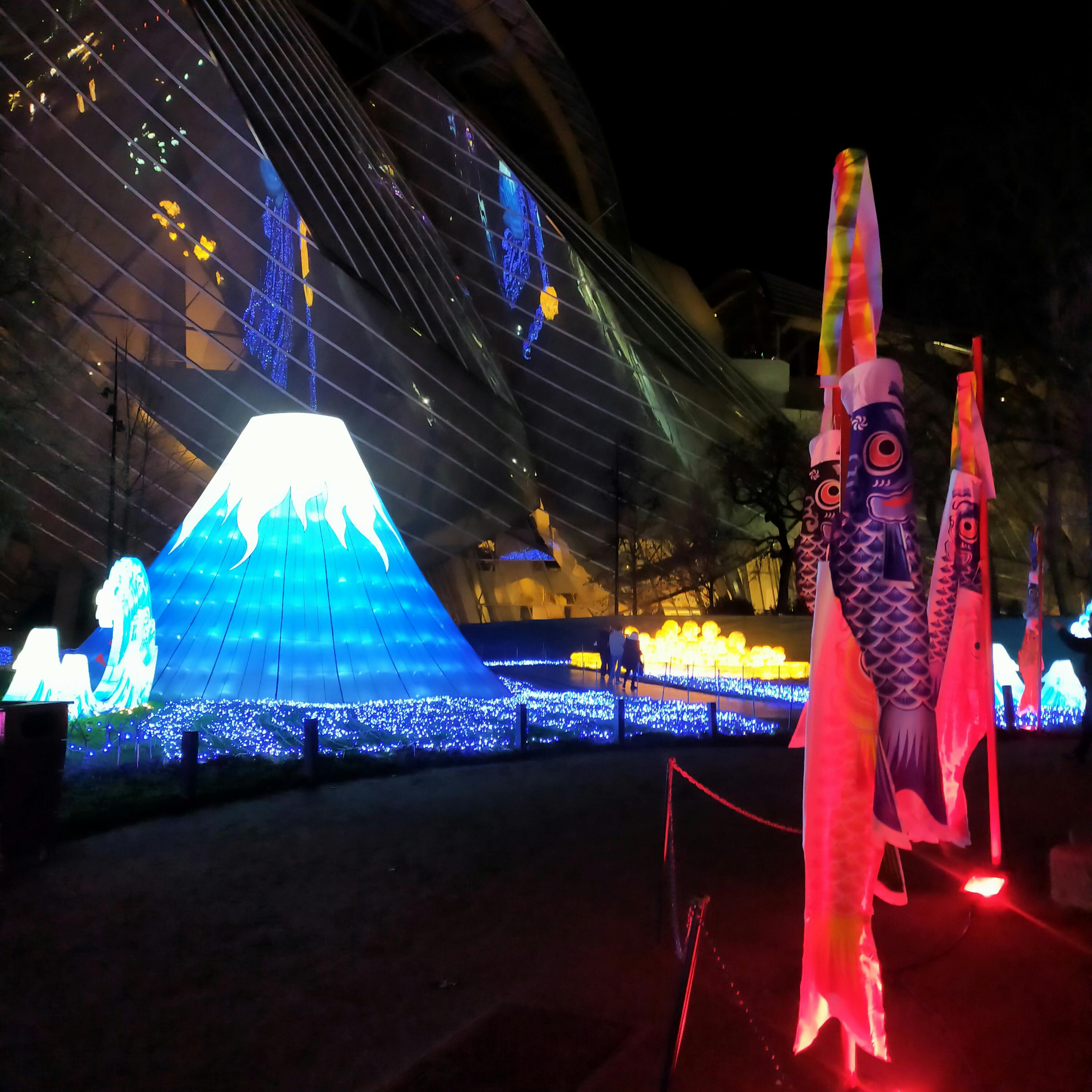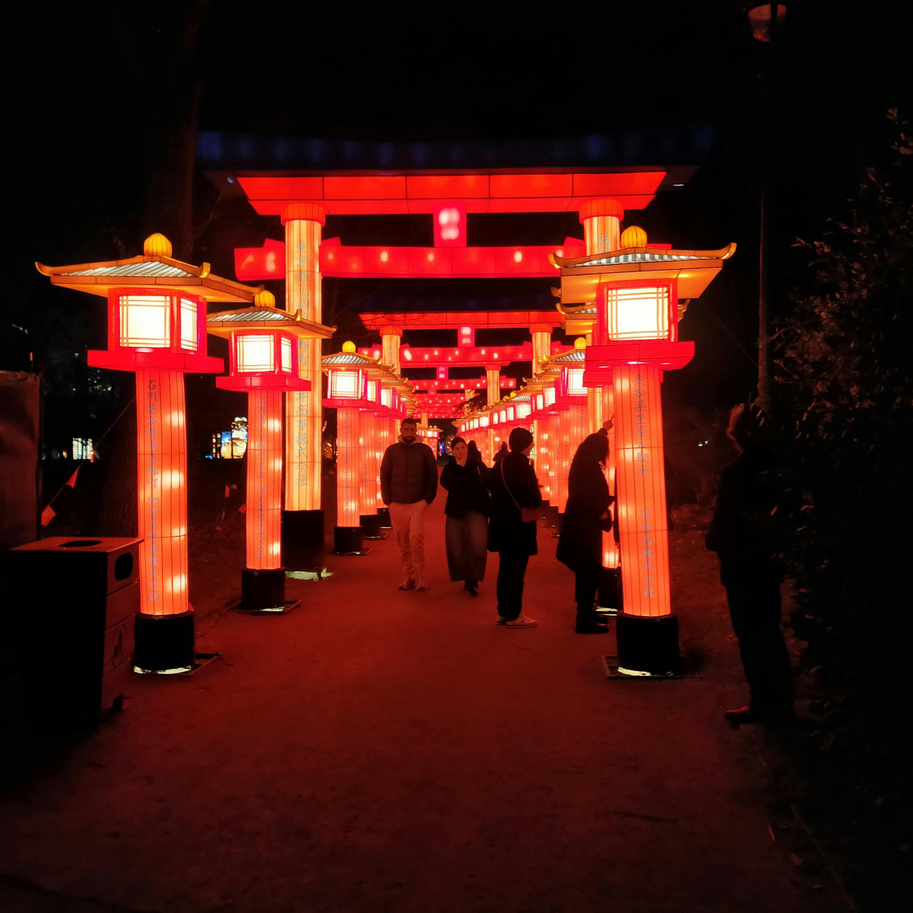 Se japanska ljusdisplayer och gå genom upplysta stigar