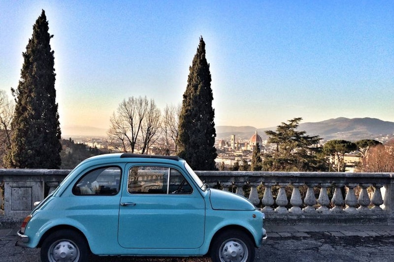 Ta dig tillbaka till garaget och ta den mest natursköna vägen tillbaka. När du når de trädkantade avenyerna, förbered dig på att vända några huvuden när du och din gamla Fiat 500 blir snacket om berömda Florens.