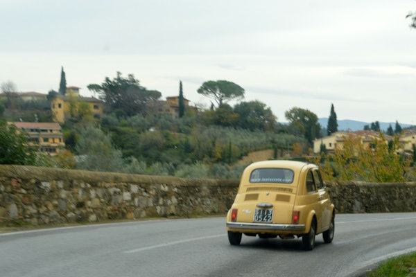 Möt din vackert restaurerade veteranbil mitt i den idylliska toskanska landsbygden. Följ med din expertreseledare, som ger dig lite kunnig vägledning om hur du kör denna blast från det förflutna – en 1960-talets Fiat 500.
