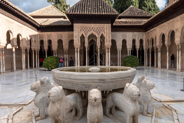 Besök Alhambra och Nasrid palatsen för att utforska deras invecklade arkitektur och frodiga trädgårdar. Gå genom fantastiska gårdar utsmyckade med detaljerade kakel och fontäner.
