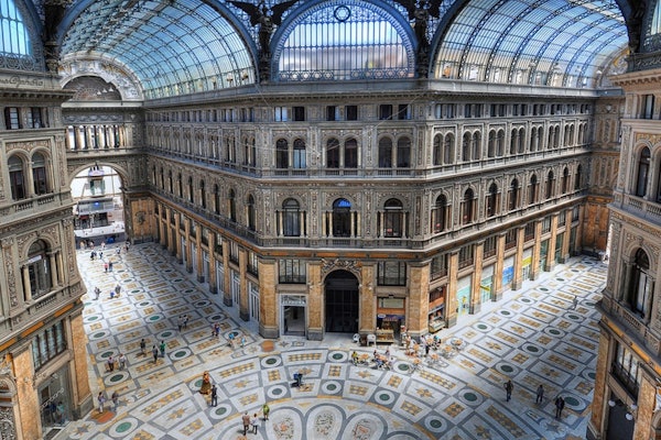 Utforska elegansen i Galleria Umberto I och beundra San Carlo-teaterns exteriör, ett mästerverk av arkitektur. Gå sedan till Piazza Plebiscito och gå upp till Quartieri Spagnoli via den monumentala bergbanetrappan.