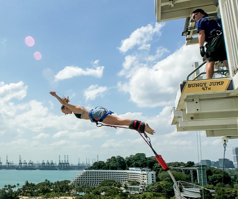 Oavsett om du är en vågad hoppare eller bara en bredögd åskådare som kantar någon annan från kanten, gör dig redo för Singapores mest spännande attraktion: AJ Hackett Bungy Jump!