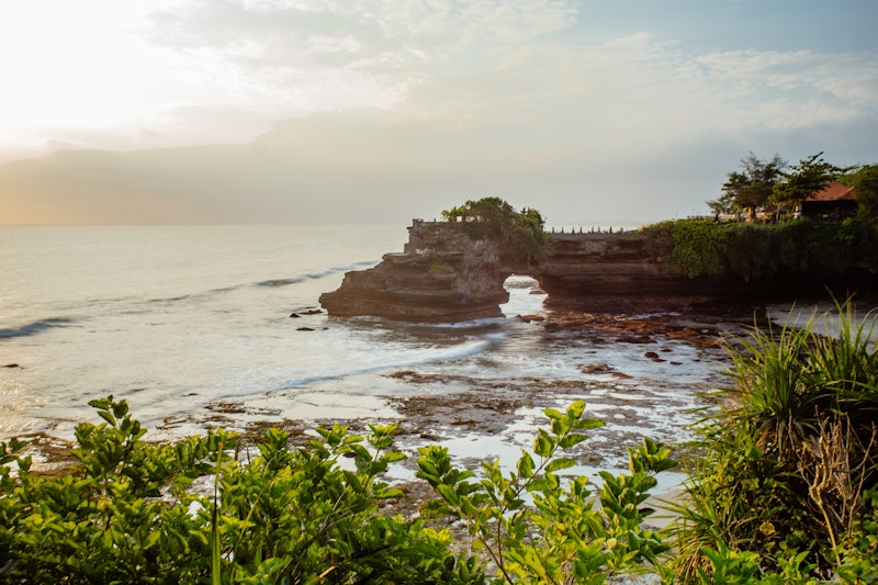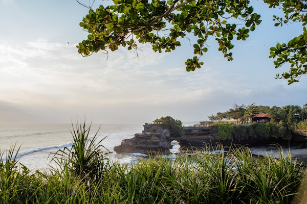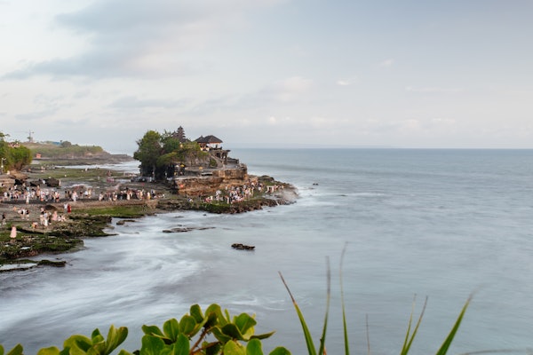 在海神庙( Tanah Lot Temple )结束一天的工作,欣赏美丽的海上日落。