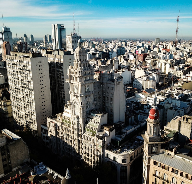 夜晚,灯塔闪烁着动作,让您从高处欣赏异国情调的外立面的绝佳城市景观。