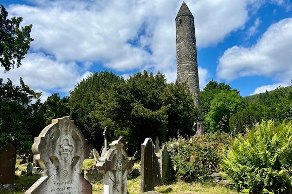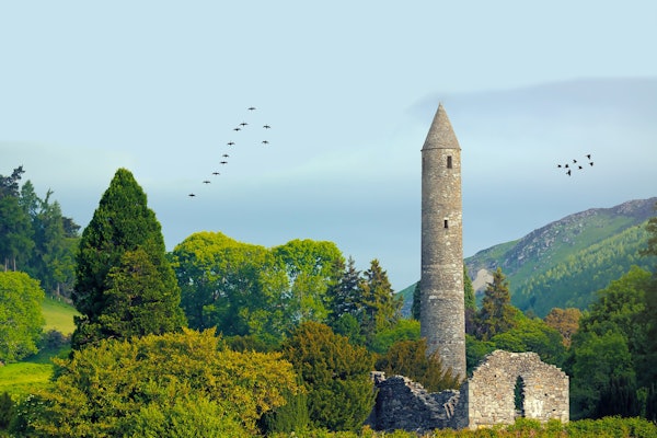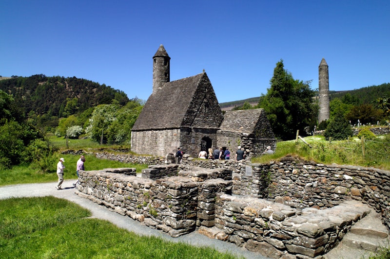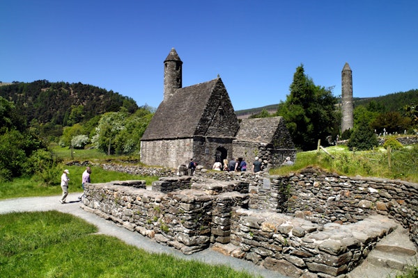 准备格兰达洛和威克洛山脉一日游。 格伦达洛( Glendalough )的早期中世纪修道院遗址是一个亮点,周围环绕着森林覆盖的山坡和水晶湖。