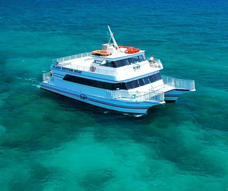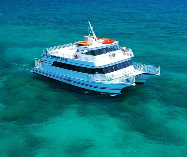 在这个温暖而干燥的水下探险中,感受海底世界。玻璃底船将乘坐豪华的双体船带您穿过墨西哥湾,该双体船配有玻璃地板观景台。