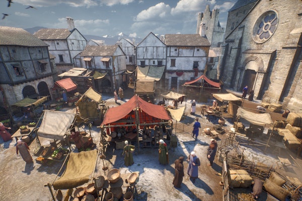 使用虚拟现实,漫步熙熙攘攘的街道,欣赏中世纪市场,欣赏城墙和训练中的士兵。