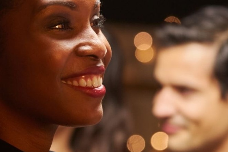 在伦敦晴朗的日子里,一对夫妇站在阳台上,俯瞰塔桥和泰晤士河。
