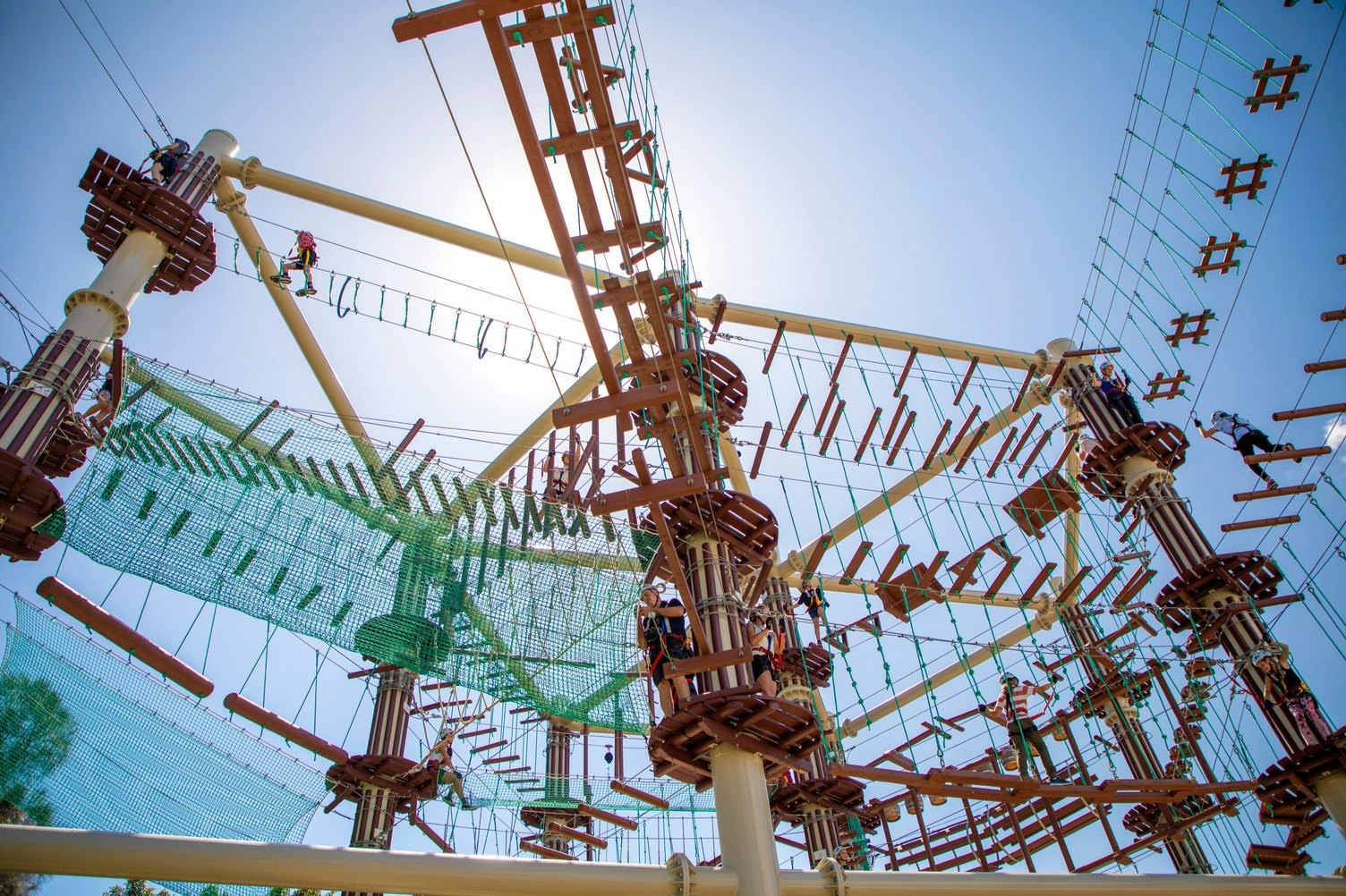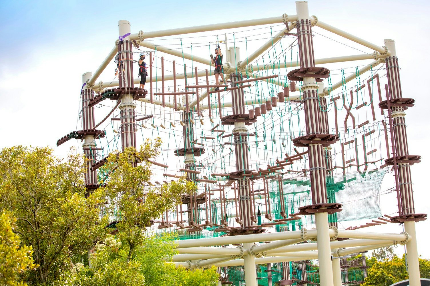 Next Level位于昆士兰州马鲁奇多尔( Maroochydore )的阳光广场( Sunshine Plaza ) ,位置便利,由三座22米高的六边形钢塔组成,由数公里的电缆、绳索和木材相互连接。 该公园有4个具有挑战性的水平,分布在7个赛道上,共有140多项空中活动,其中包括16条在玉米溪上延伸至130米的滑索。 爬得越高,电路就越具有挑战性。 向6岁以上的登山者开放。