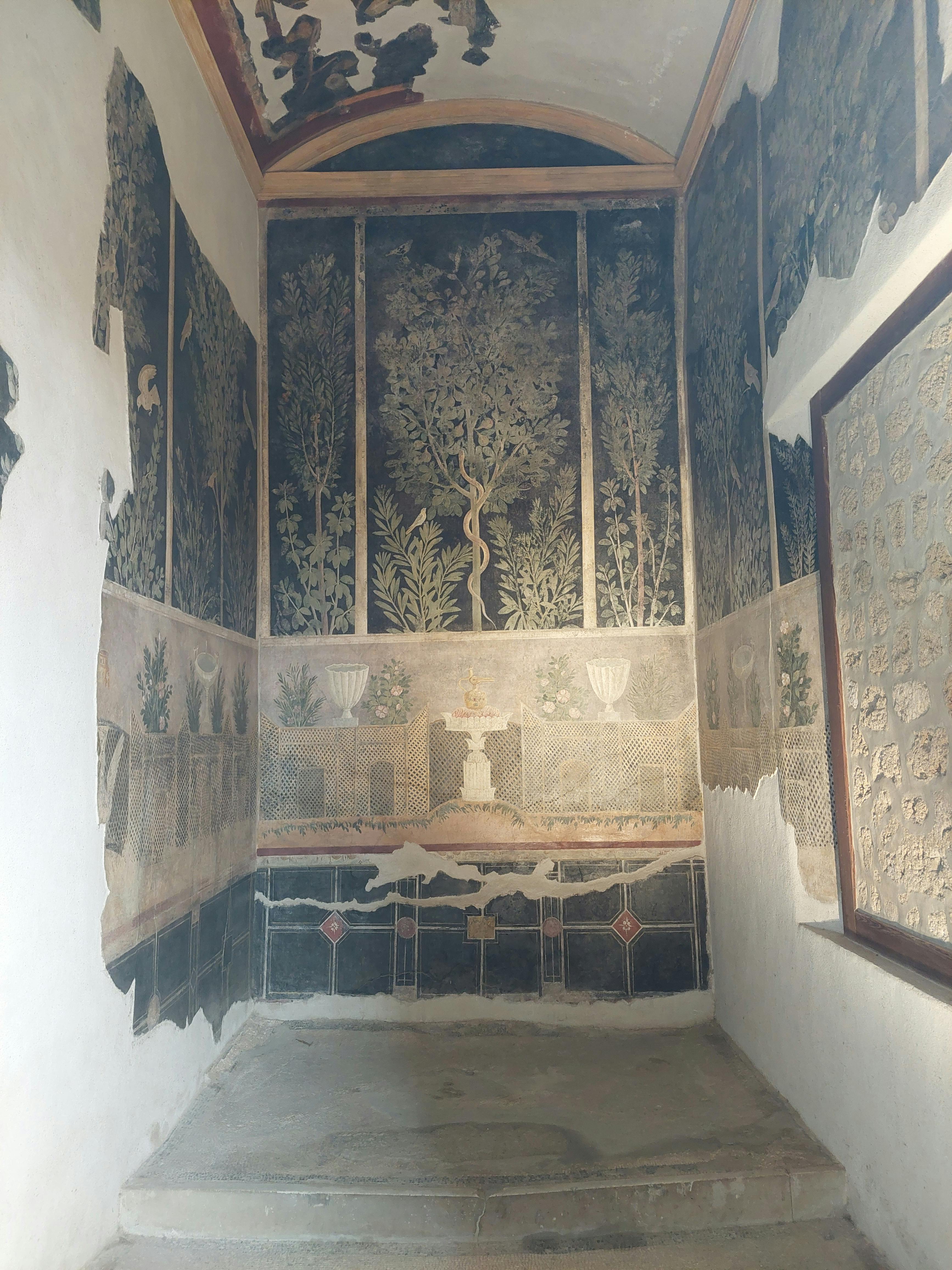 Vettii兄弟在室内设计方面有着大胆的品味;他们的房子就像一个宏伟壁画的步入式艺术画廊,描绘了希腊神话中无数戏剧性场景。 您可以看到半神赫拉克勒斯勒死一串蛇,伊克西翁被赫尔墨斯绑在火焰轮上,传奇英雄阿基里斯在天罗星上,潘和厄罗斯之间的摔跤比赛,狄俄尼索斯发现阿里阿德涅等等。 参观庞贝城时,必须在维蒂之家( House of the Vettii )停留。