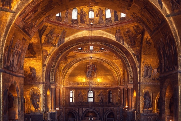 接下来,参观圣马可教堂。 免排队直接进入,欣赏金色马赛克和拜占庭式建筑。 使用提供多种语言的语音导览,按照自己的节奏了解大教堂的艺术品和历史。